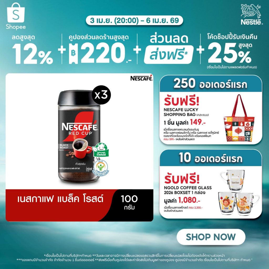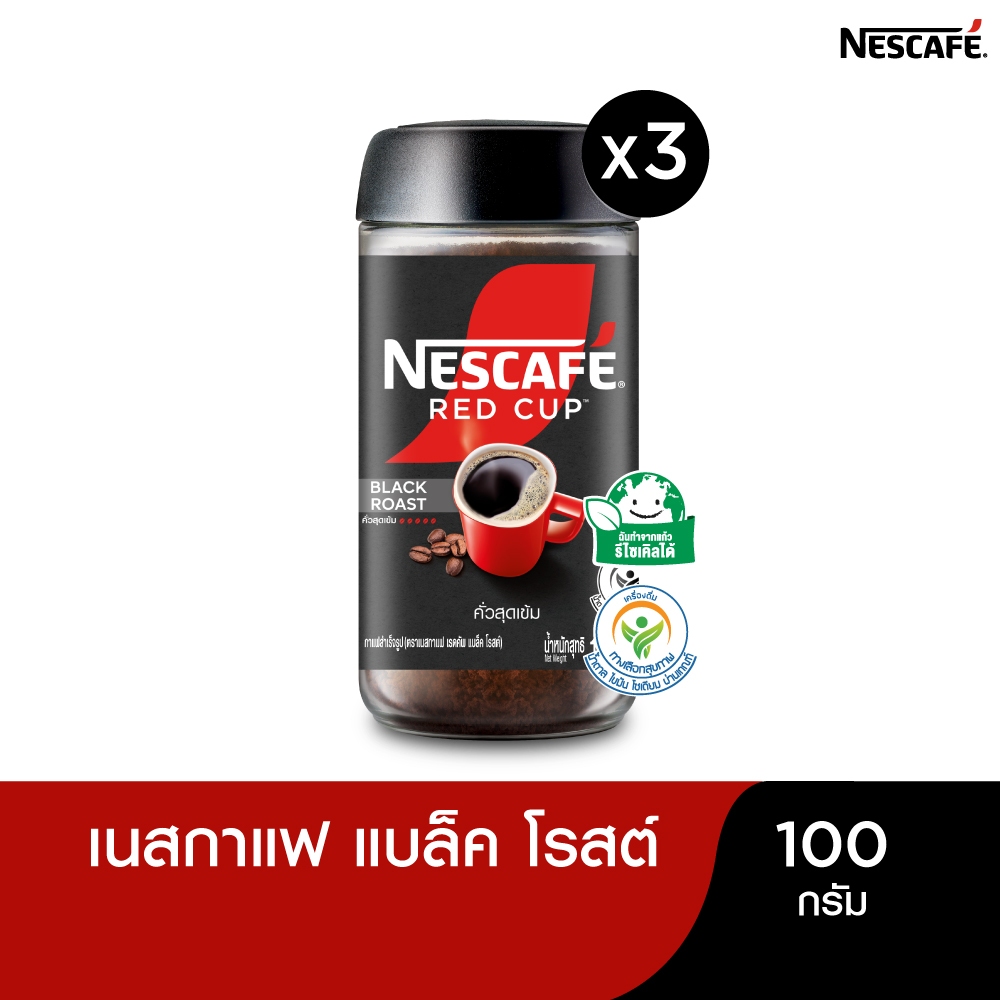 NESCAFÉ Red Cup Black Roast เนสกาแฟ เรดคัพ กาแฟสำเร็จรูป แบล็คโรสต์ แบบขวดแก้ว ขนาด 100 กรัม (แพ็ค 3 ขวด) NESCAFE