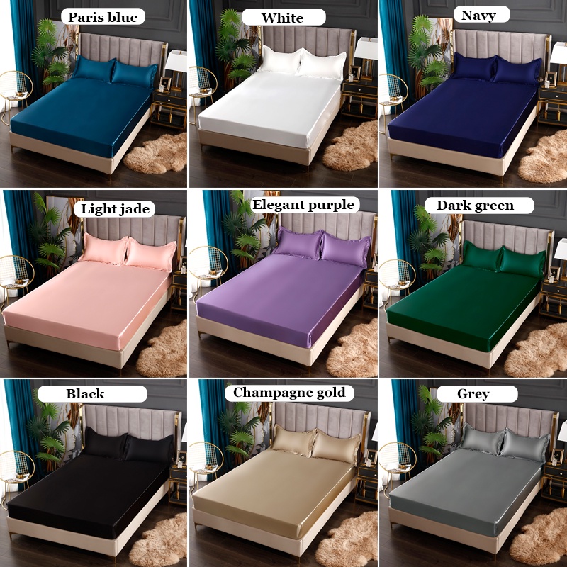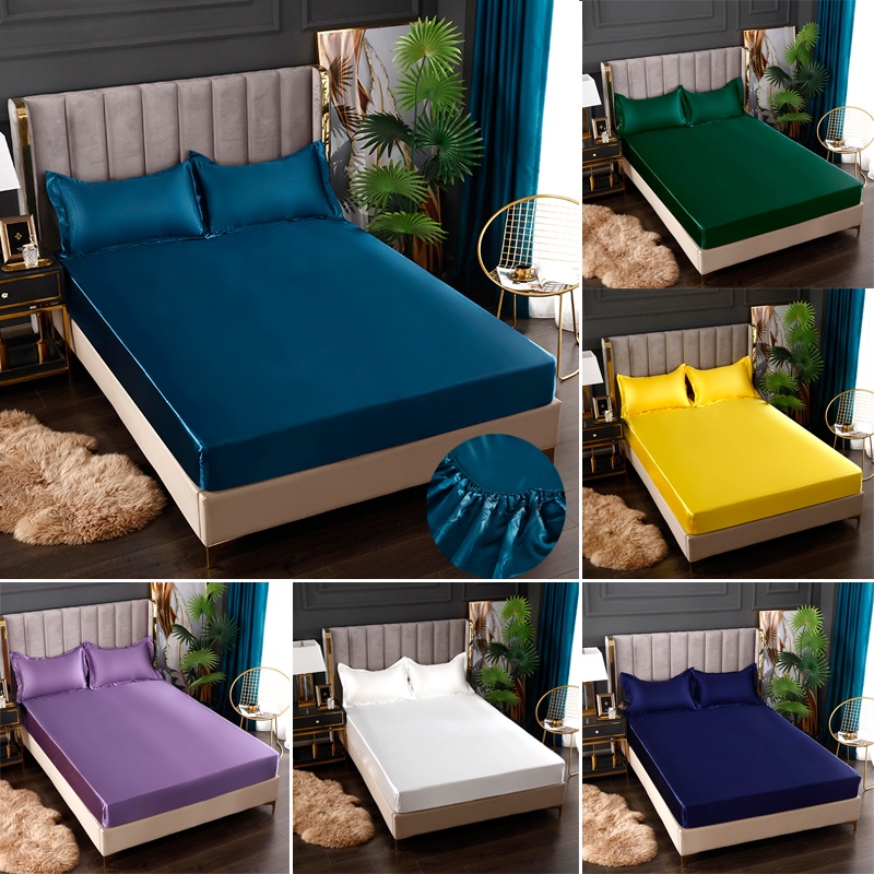ผ้าปูที่นอน / ปลอกหมอนผ้าไหมซาตินนุ่ม มี 8 สีให้เลือก สําหรับเตียงเดี่ยว / เตียงคู่ / ขนาดใหญ่ (ขายปลีก) คุณภาพสูง
