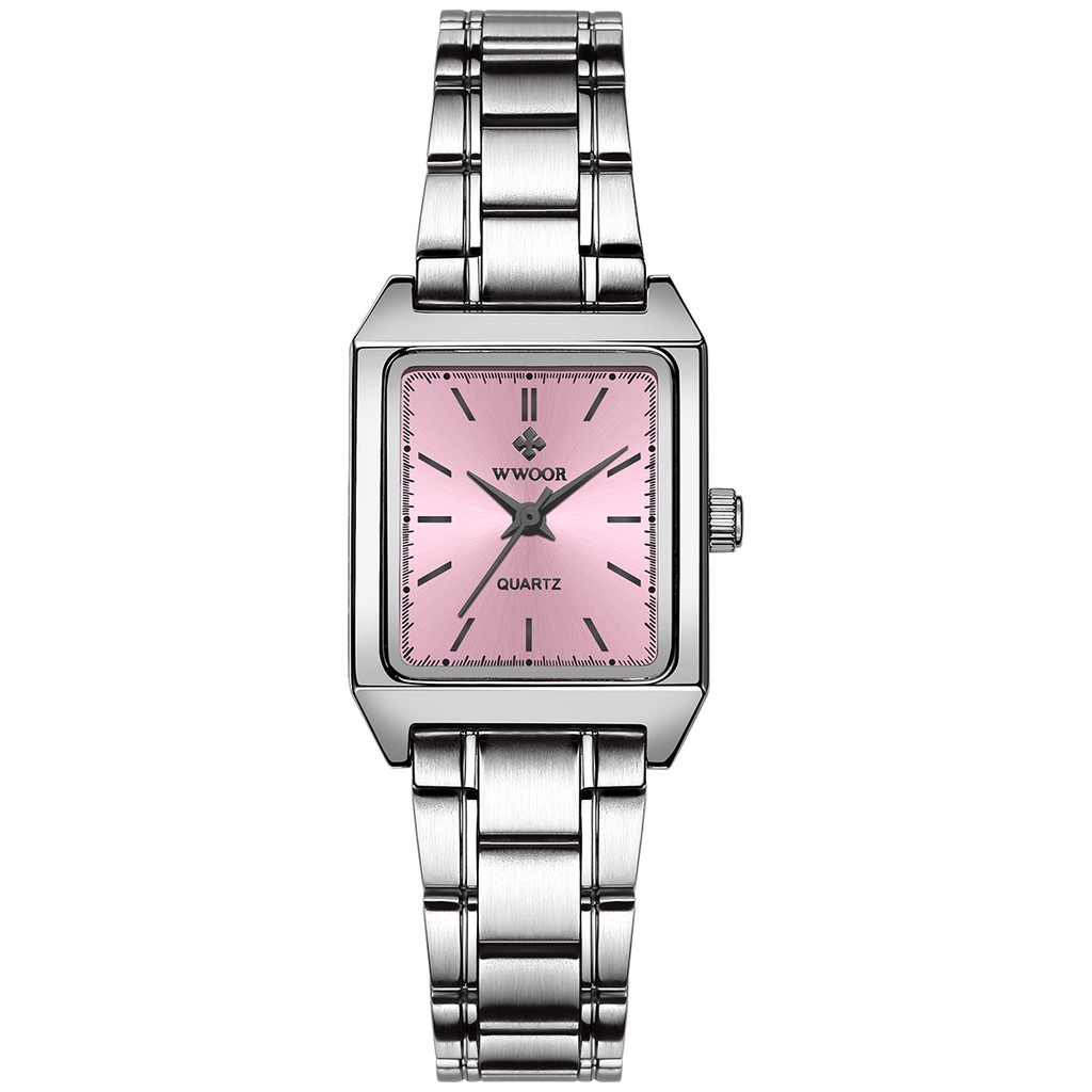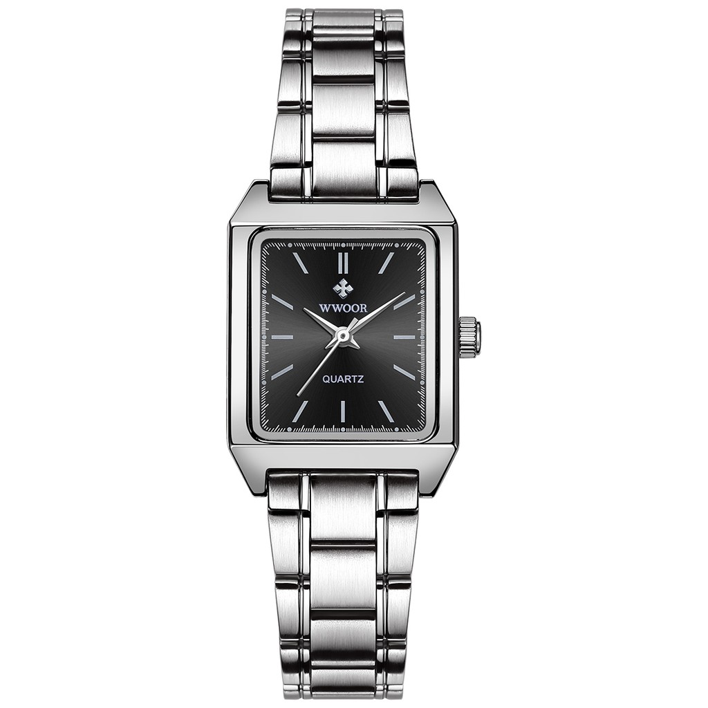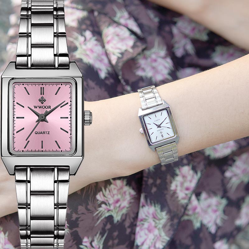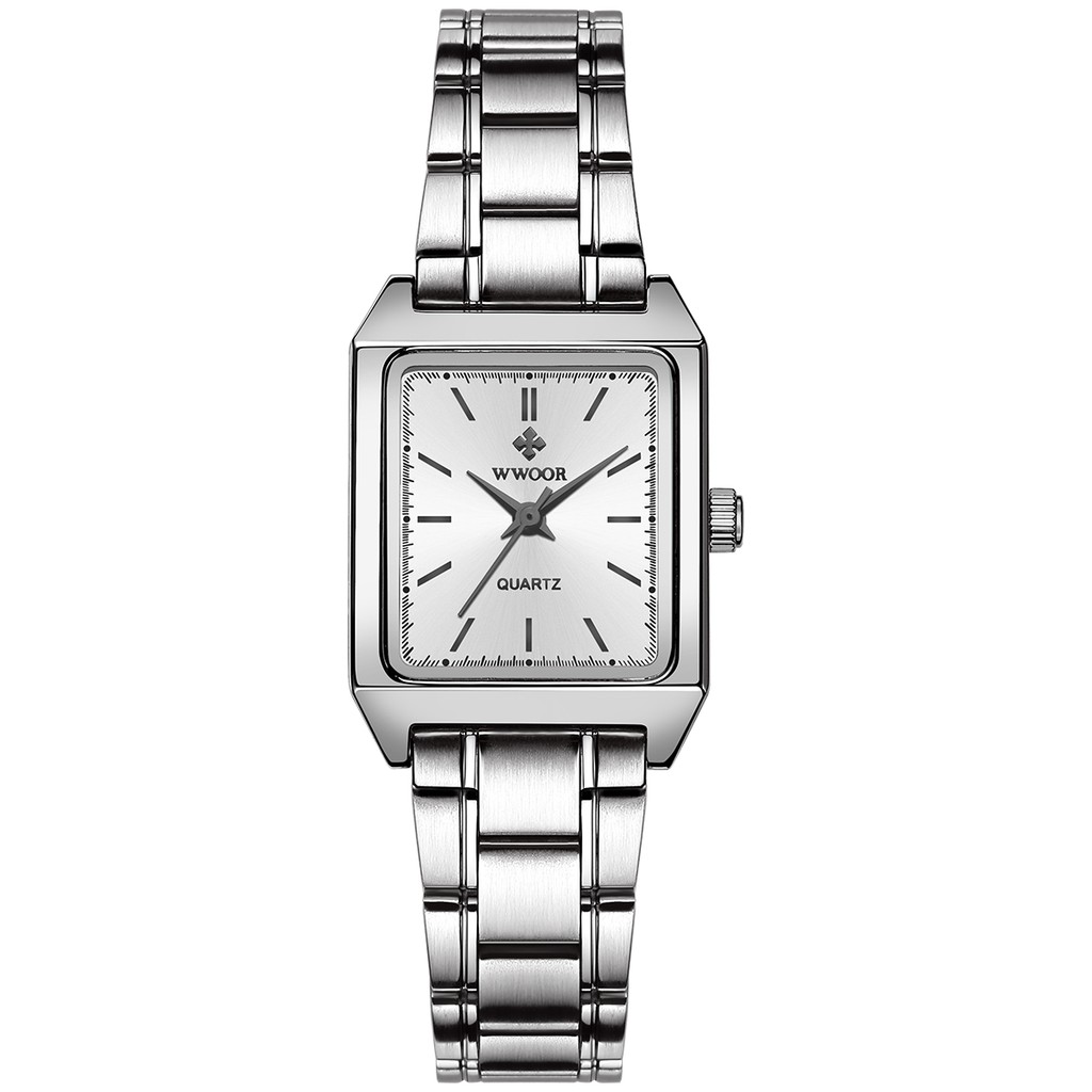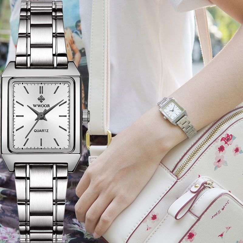 WWOOR นาฬิกาข้อมือ สเตนเลส กันน้ำ ทรงสี่เหล ี่ยมผืนผ้า แบบเรียบ สำหรับผู้หญิง 8850