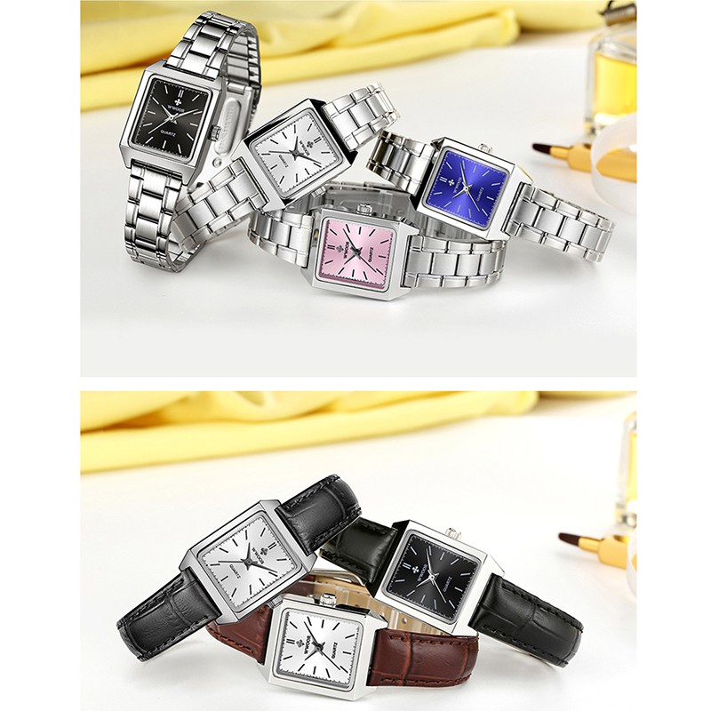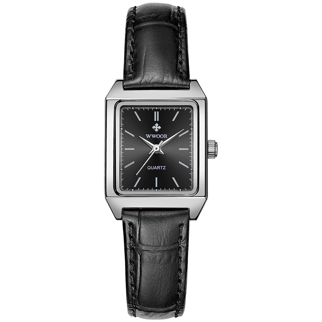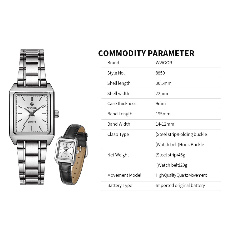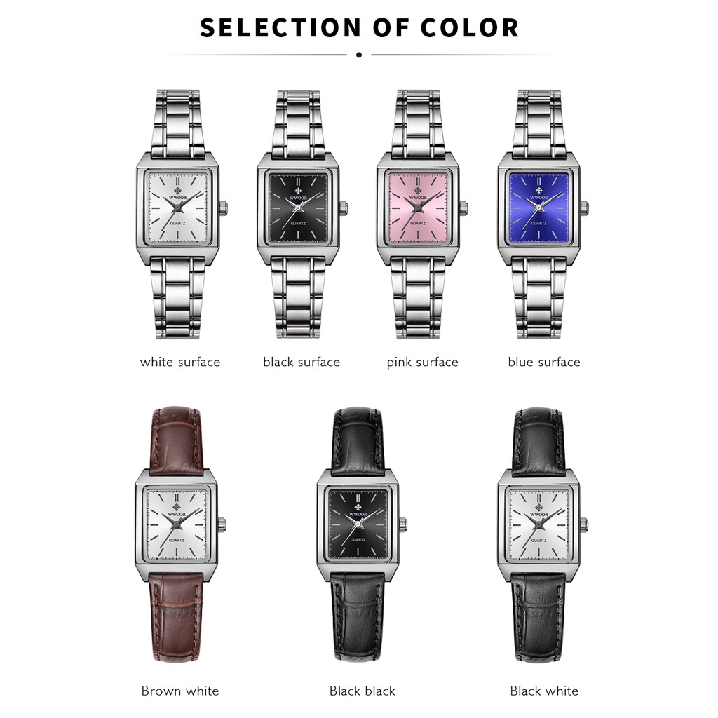 WWOOR นาฬิกาข้อมือ สเตนเลส กันน้ำ ทรงสี่เหล ี่ยมผืนผ้า แบบเรียบ สำหรับผู้หญิง 8850