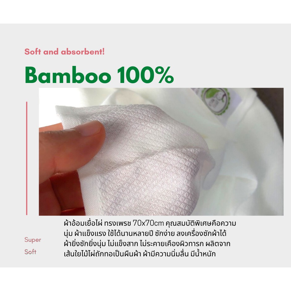 ผ้าอ้อมเยื่อไผ่ ใยไผ่ แบมบู 100% ทรงเพรช ผ้าอ้อมทารก ผ้านิ่มมาก ขนาด 27*27 นิ้ว (70*70ซม)