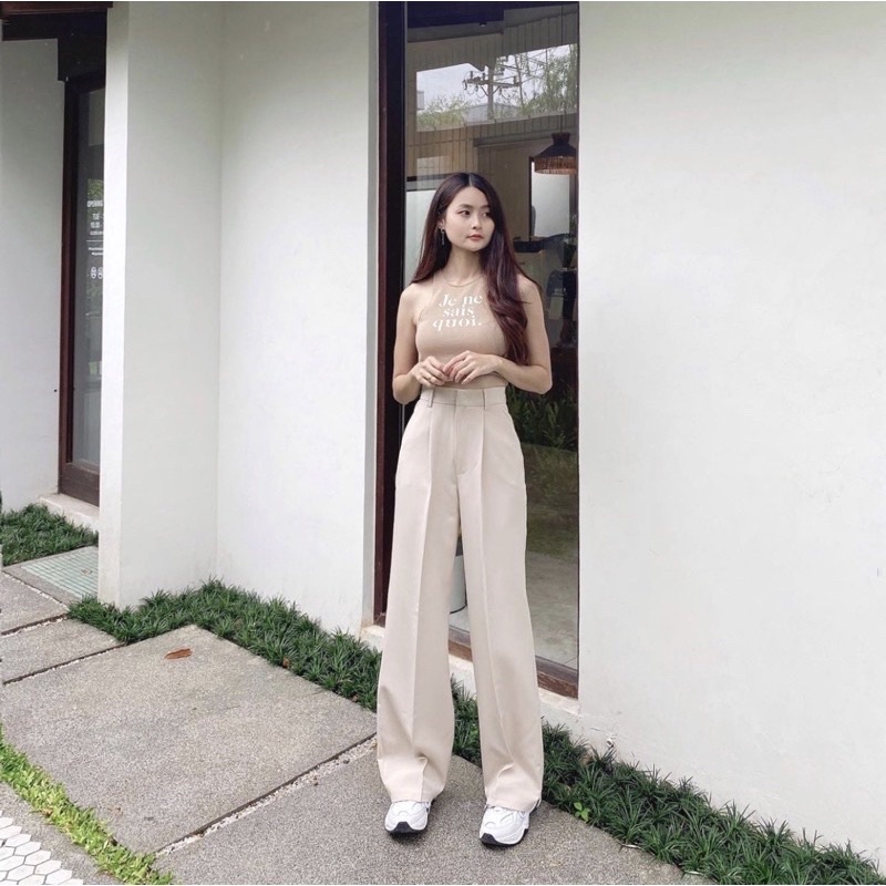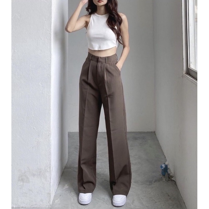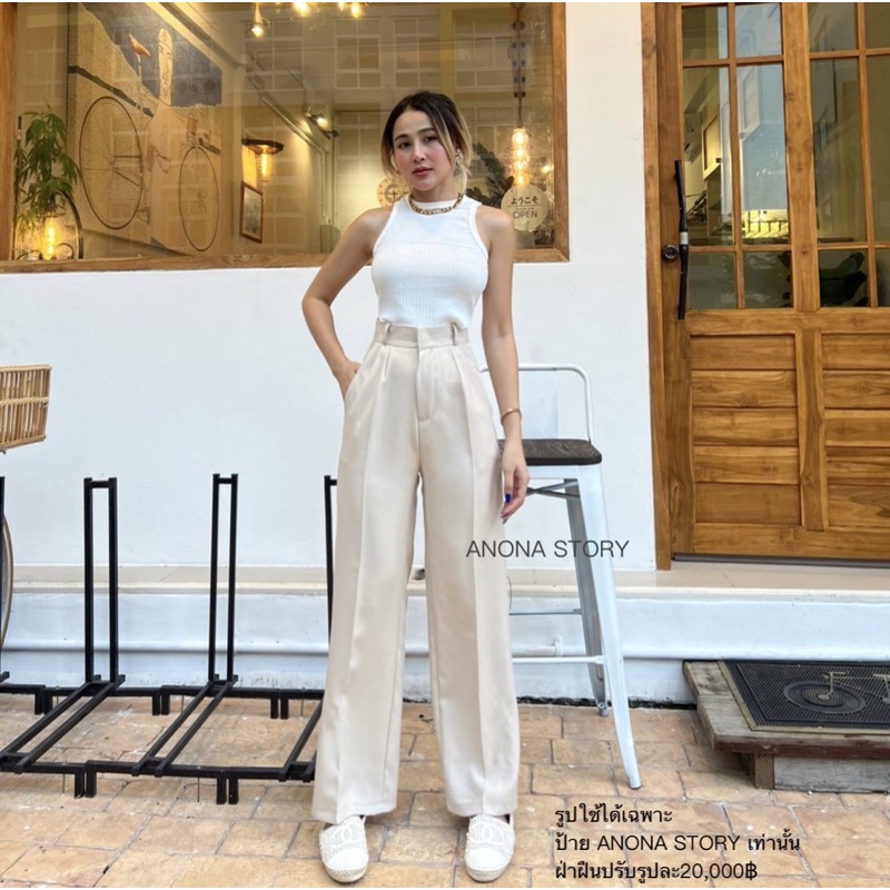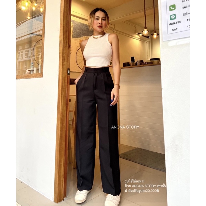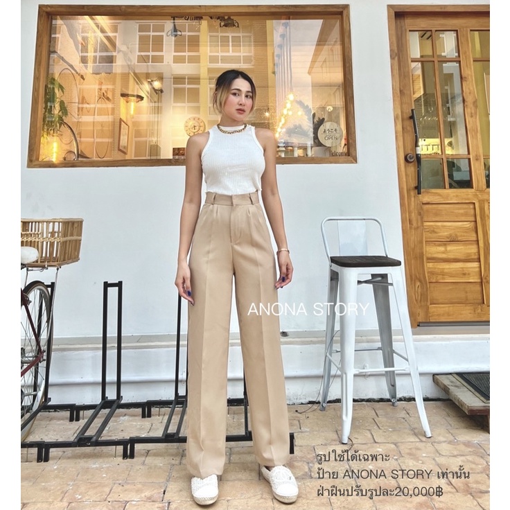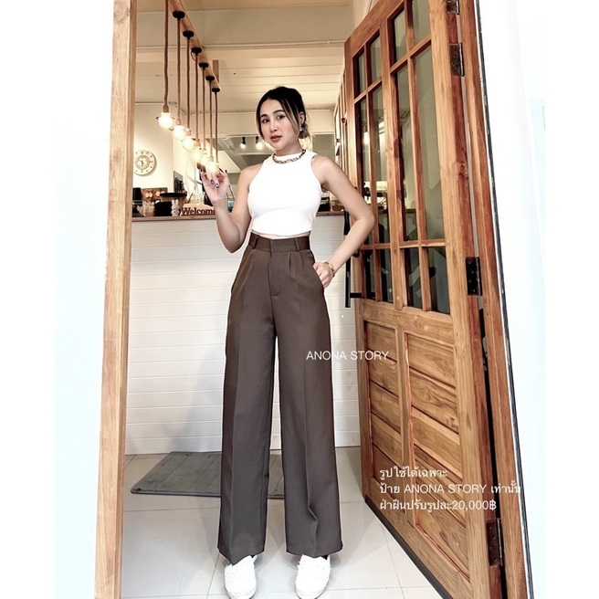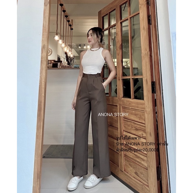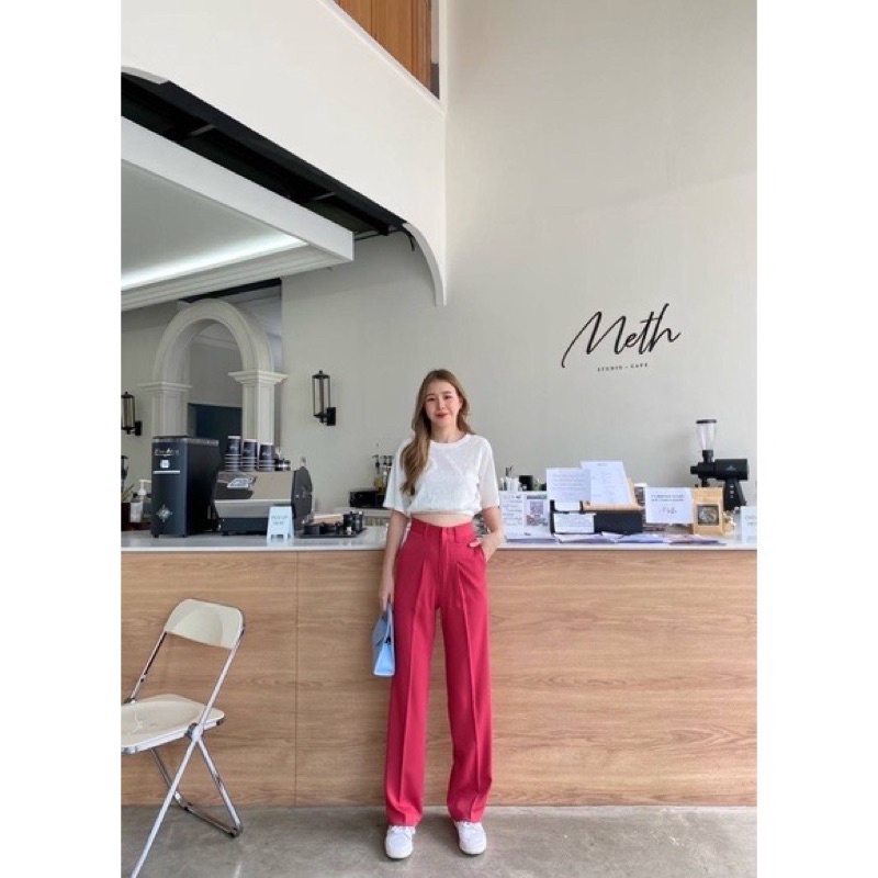 (B)👖กางเกงขากระบอก ตะขอหน้าแต่งหู ผ้าเปเป้🔥พร้อมส่ง