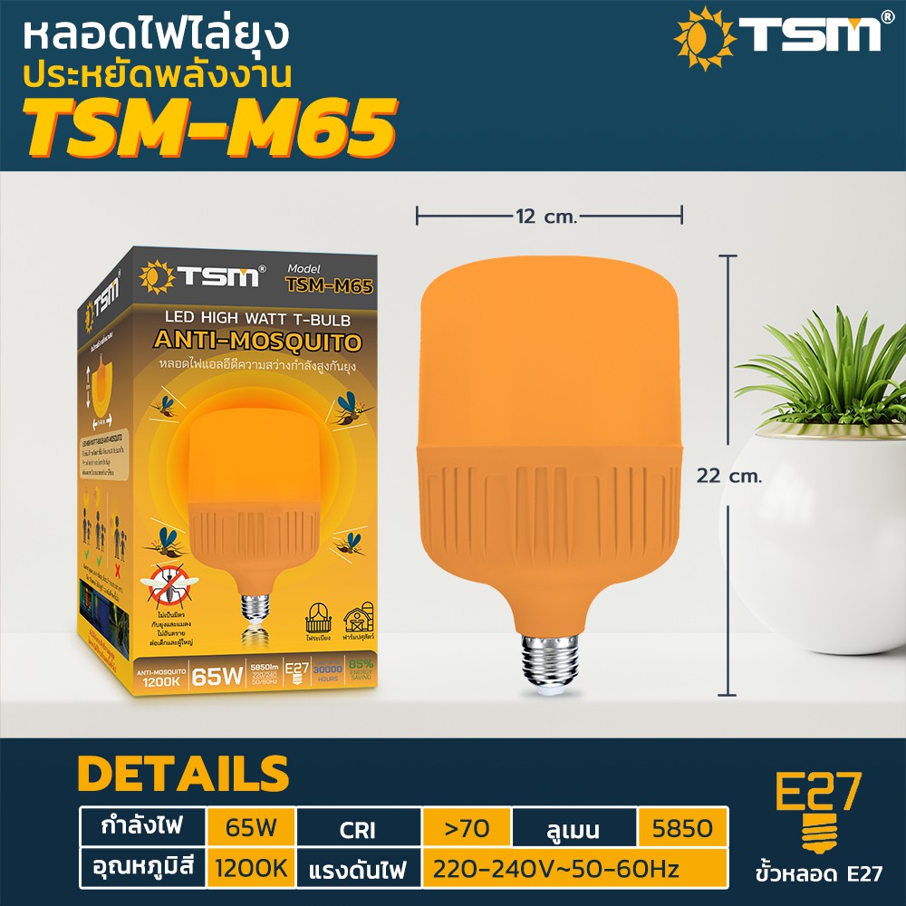 หลอดไฟไล่ยุงและแมลง 45W 65W ขั้วE27 ทรงกระบอกแสงไฟสีเหลืองส้ม หลอดไฟ ไฟไล่ยุง รุ่น TSM-M45,TSM-M65
