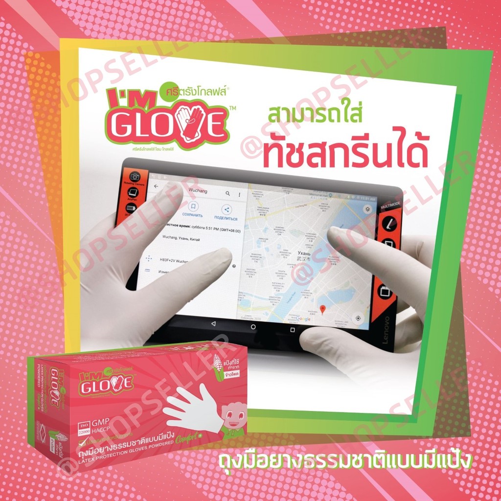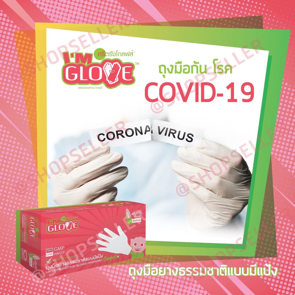 ถุงมือยางสีขาว แบบมีแป้ง ผลิตจากโรงงานศรีตรัง ป้องกันเชื้อโรค ยี่ห้อ I AM GLOVEทัชสกรีนได้