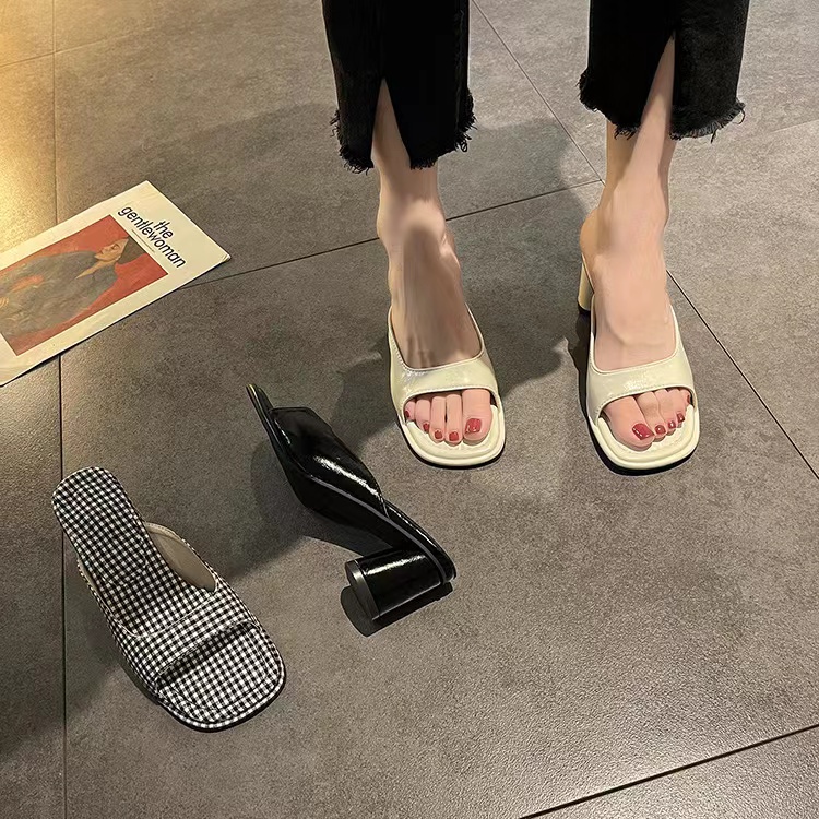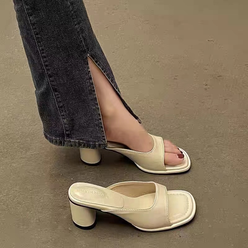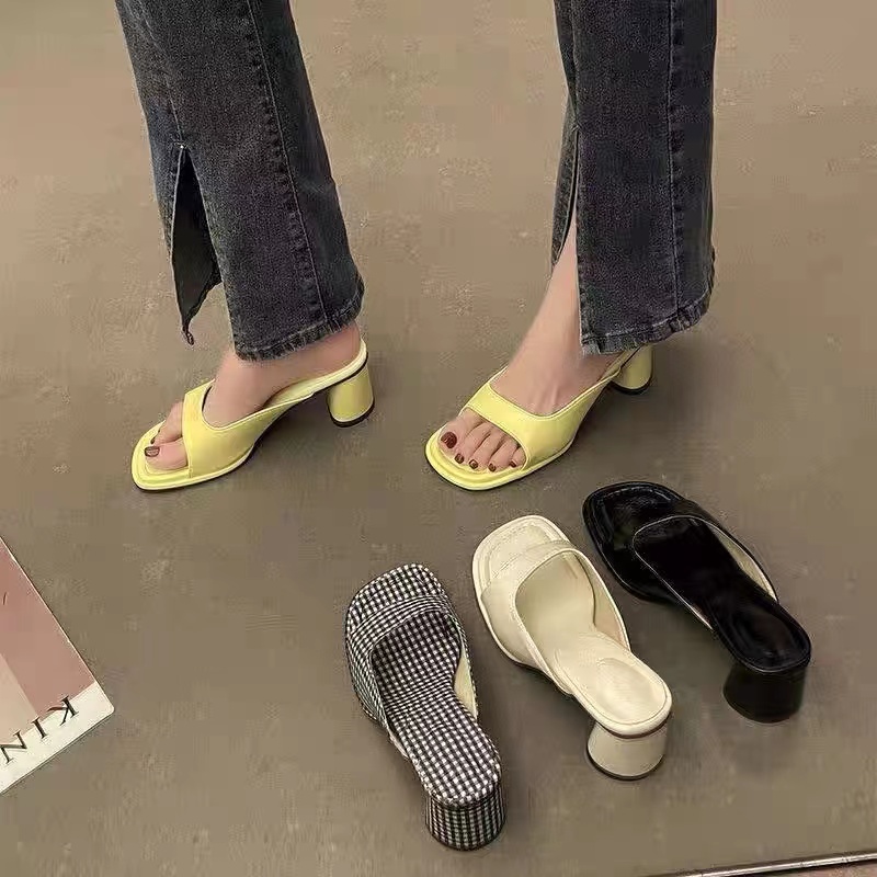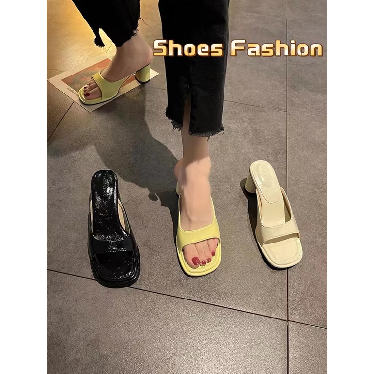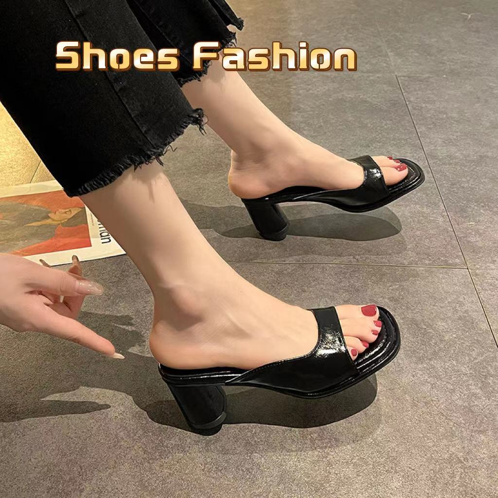 🔥พร้อมส่งจากไทย🔥TX348 รองเท้าส้นสูง (ส้น 5.5ซม) ส้นหนา หัวเหลี่ยม เข้ารูป สไตล์เกาหลี รองเท้าแฟชั่นสําหรับผู้หญิงที่ทุกค