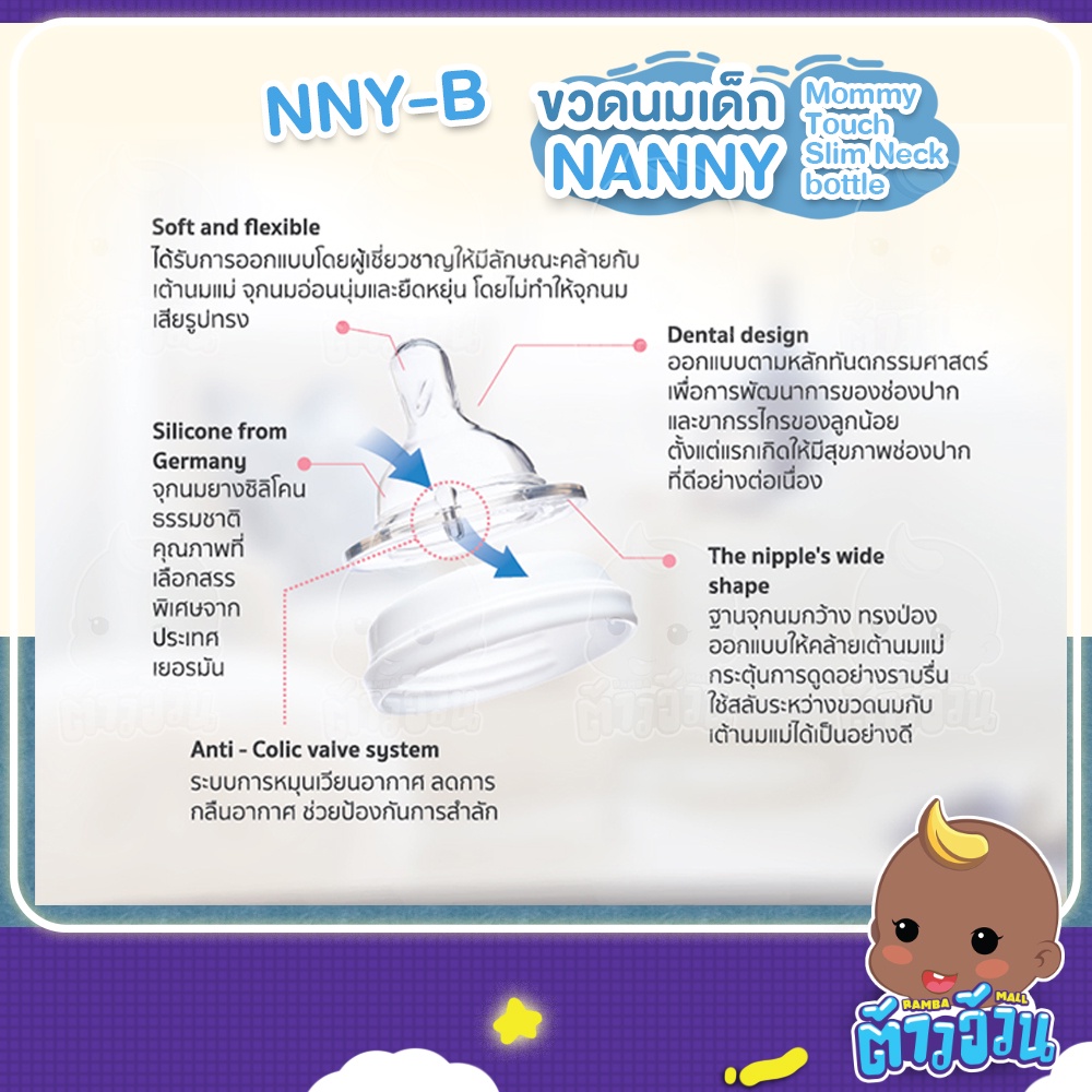 NANNY ขวดนมเด็ก NANNY 3 ไซส์ จุกนมซิลิโคน จากธรรมชาติ นุ่มพิเศษ ปลอดภัยต่อลูกน้อย