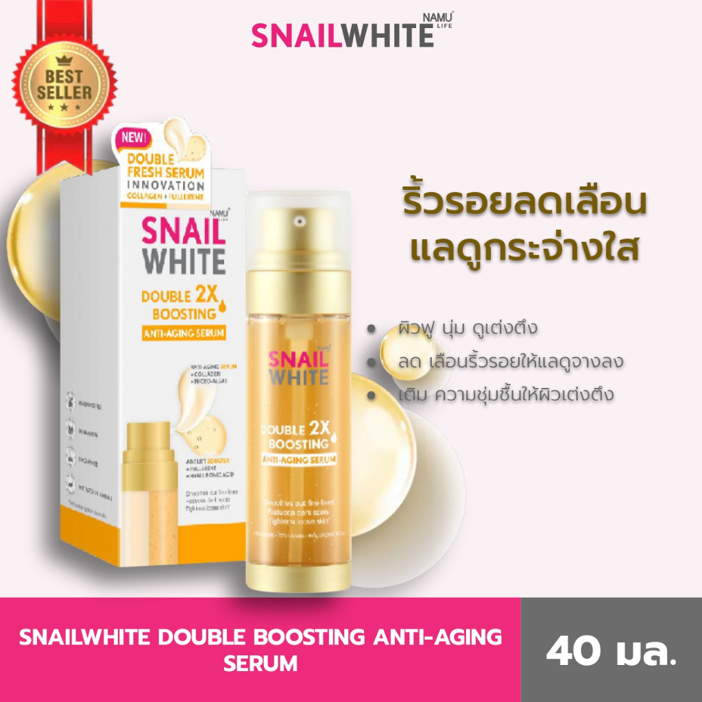 [ใหม่] SNAIL WHITE นามุ ไลฟ์ สเนลไวท์ ดับเบิ้ล บูสติ้ง แอนตี้เอจจิ้ง เซรั่ม 40มล.+40มล. (10SW00425)