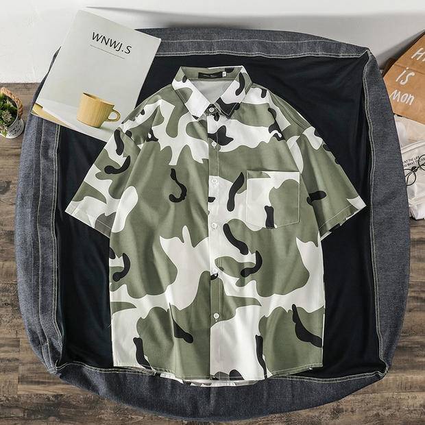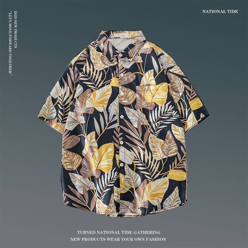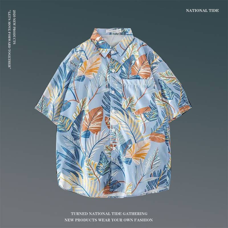 เสื้อเชิ้ตแขนสั้น 1123 เชิ้ตผู้ชาย เสื้อฮาวาย สไตล์เกาหลีคลูๆ เหมาะกับฤดูร้อน M-2XL