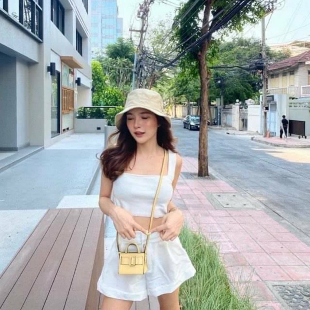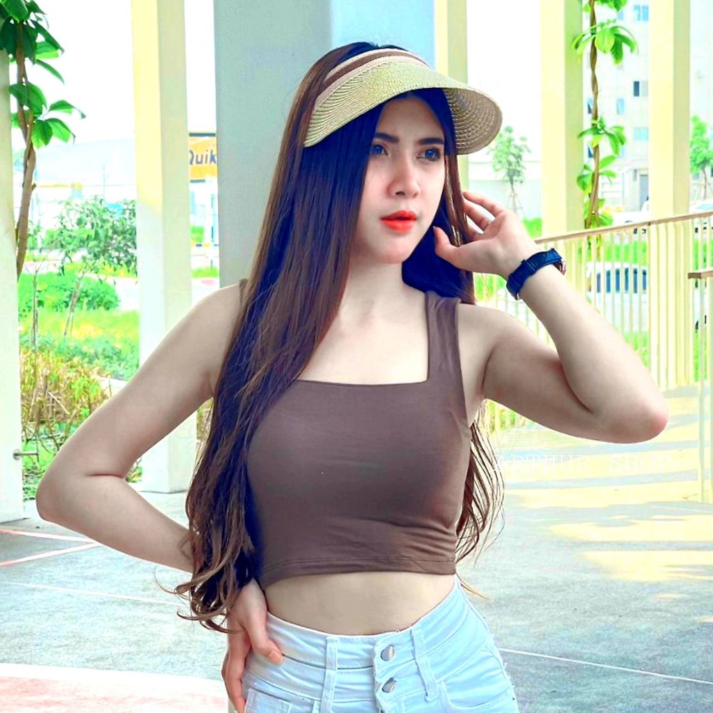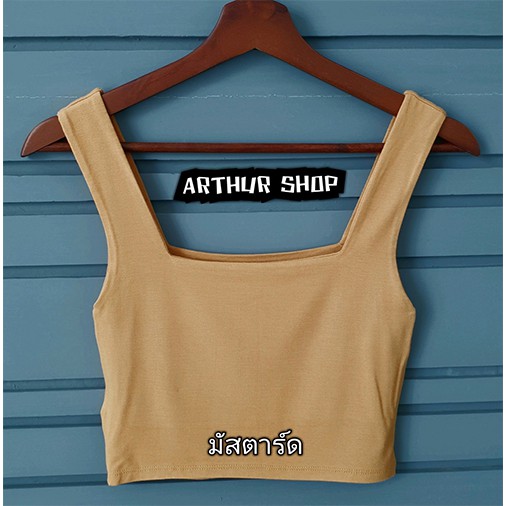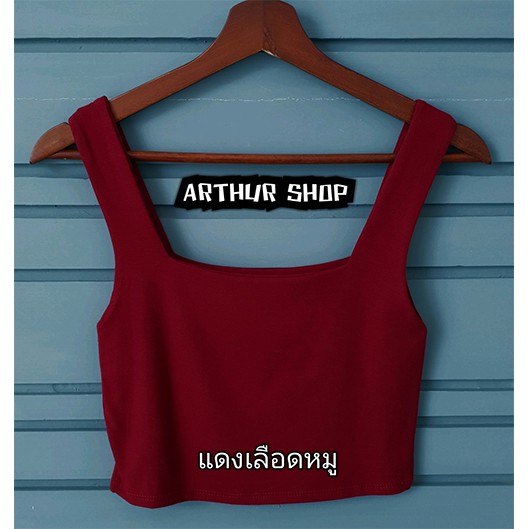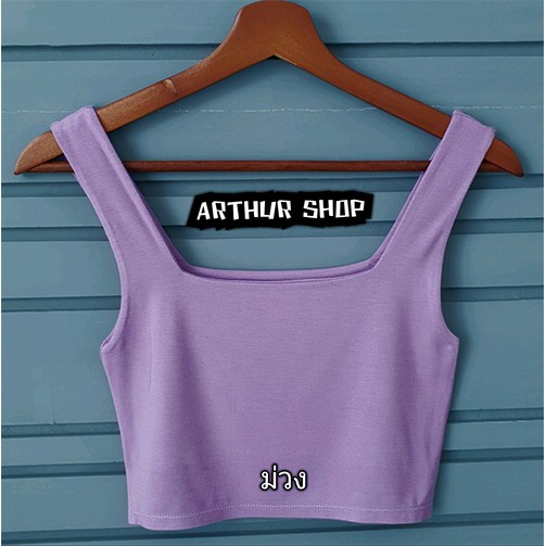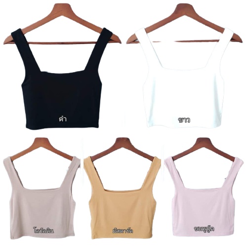 เสื้อครอปคอเหลี่ยม ผ้ายืด (เรยอน) เกรดหนา เย็บ 2 ชั้น เข้ารูป เก็บทรง ใส่สบาย