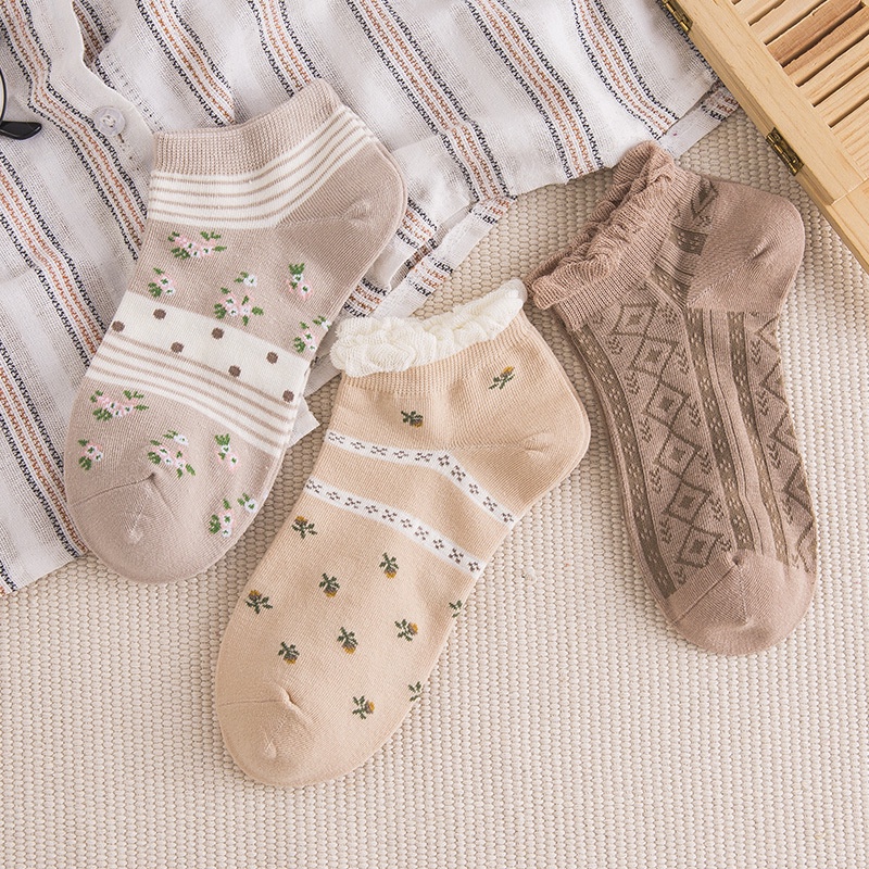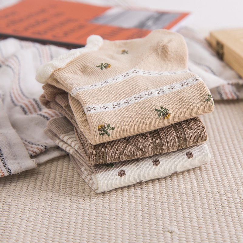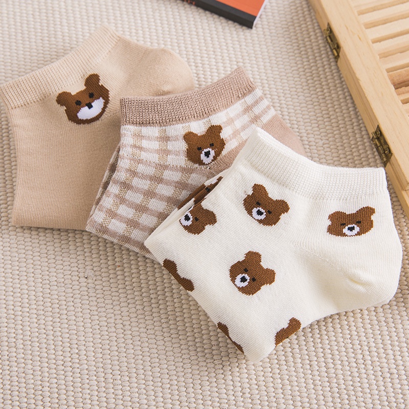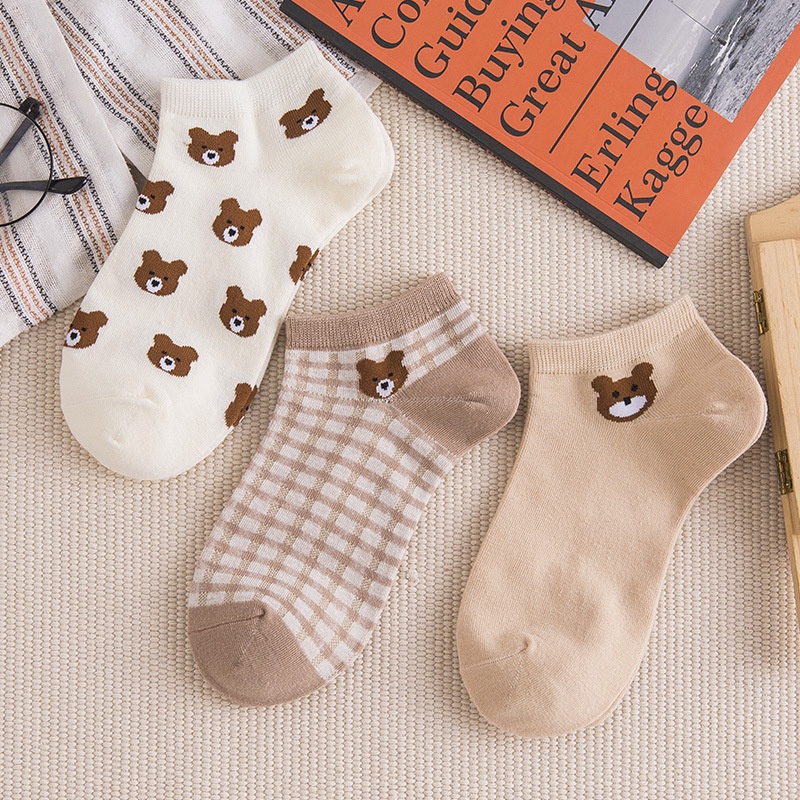 Kafu D531ถุงเท้าผ้าฝ้าย ทรงข้อต่ำ พิมพ์ลายหมี สีน้ำตาลน่ารัก