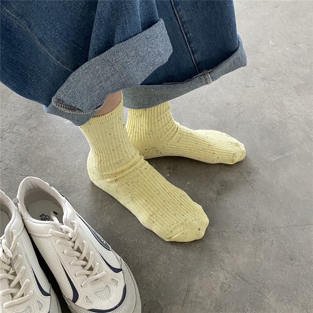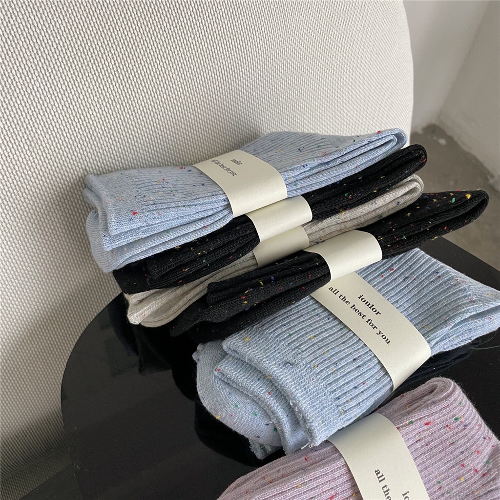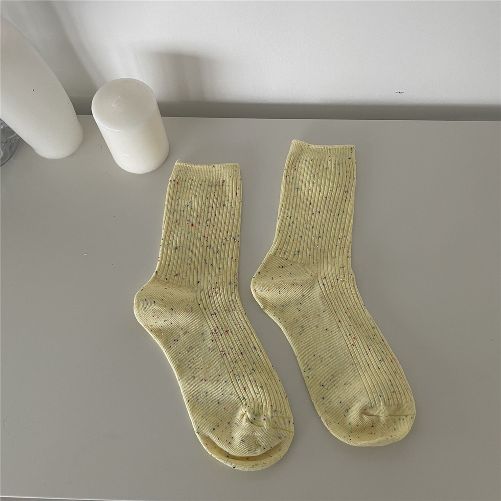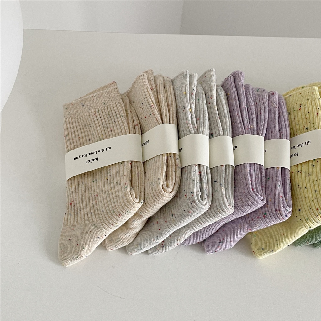 Kafu D728 ฤดูใบไม้ผลิ ใหม่ หวาน ไอเดีย เส้นด้าย สาว ท่อกลาง ถุงเท้า แถบบาง ถุงเท้า สีพื้น สําหรับผู้หญิง