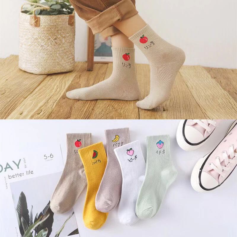 KAFU D06 ถุงเท้าข้อสั้น ผ้าฟาบริคนุ่ม พิมพ์ลายน่ารัก แฟชั่นสําหรับผู้หญิง
