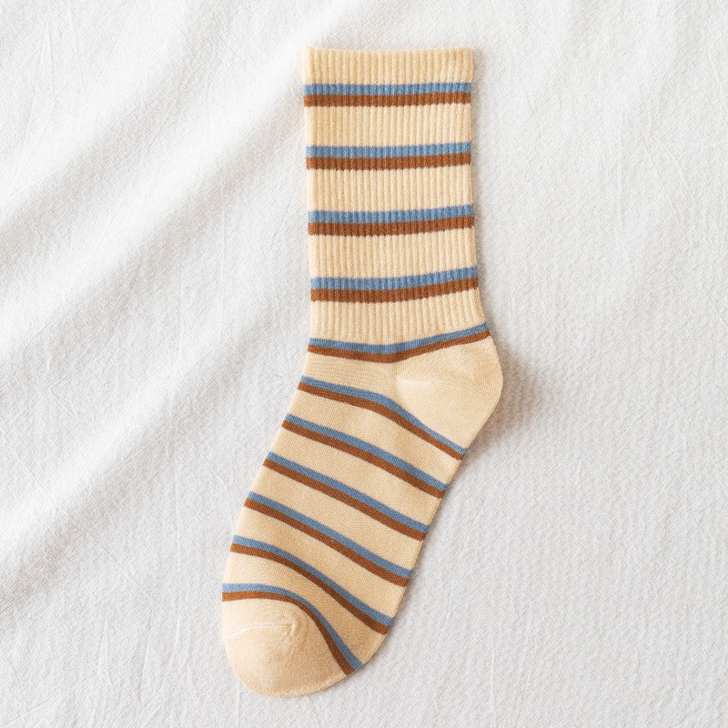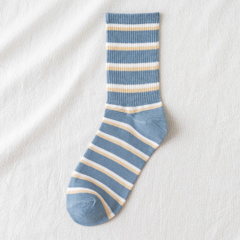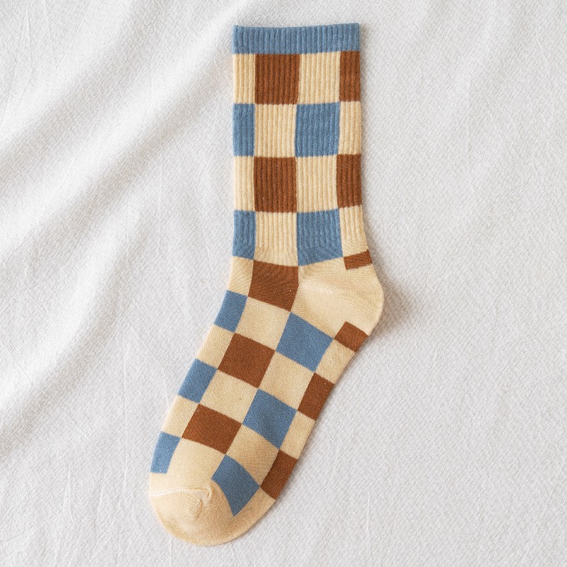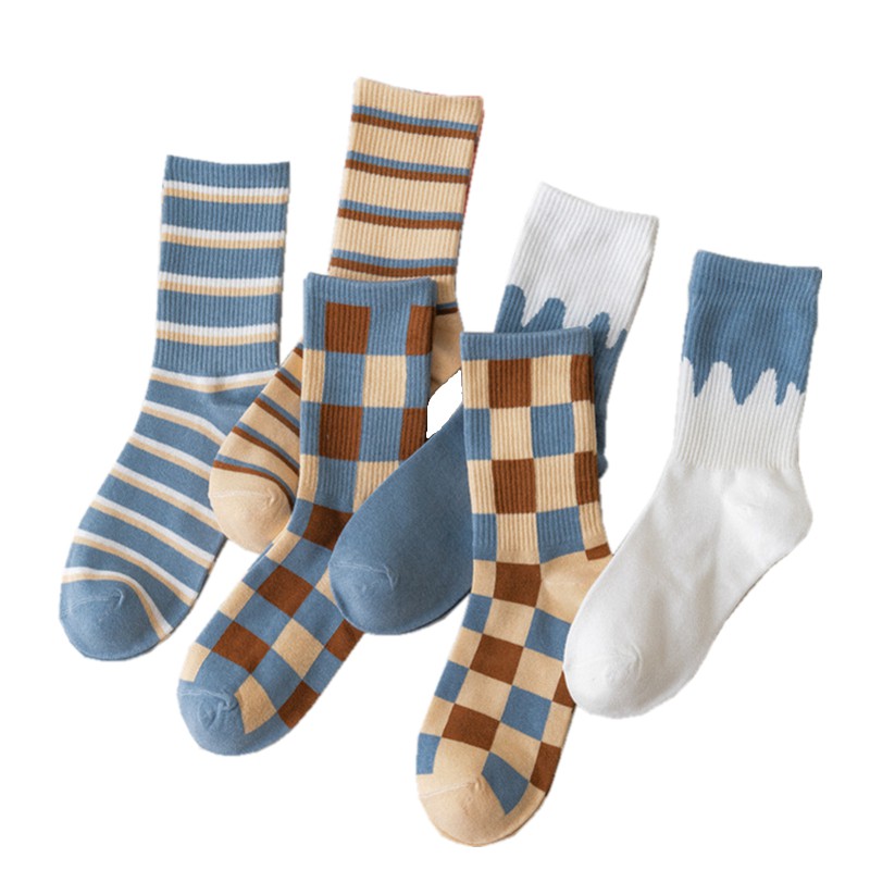 KAFU D101 ถุงเท้า ผ้าฝ้าย ระบายอากาศ ลายตาราง ลายทาง