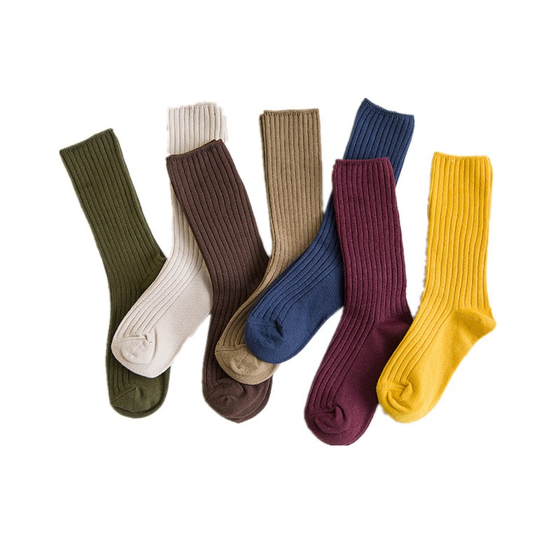 KAFU D107 สุภาพสตรีถุงเท้าขนาดกลางสีทึบฝ้ายถุงเท้ายาวสบาย ๆ