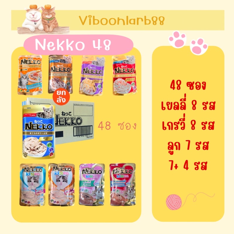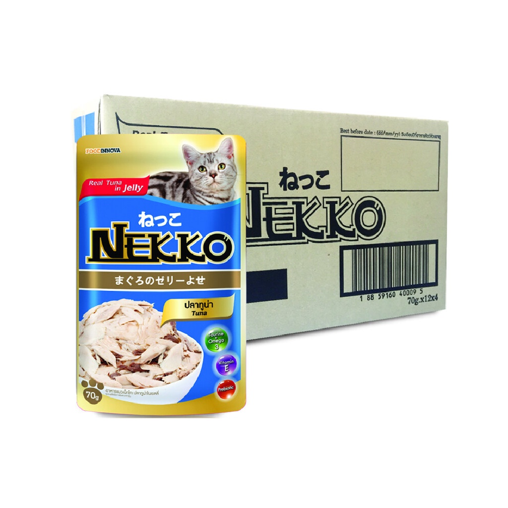 ส่งด่วนได้ของเลย🔥 Nekko Pouch ยกลัง อาหารแมวเปียก เน็กโกะ ผลิตจากปลาทูน่า ไม่มีสารกันบูด 70 กรัม X 48 ซอง (งดคละรสชาติ)