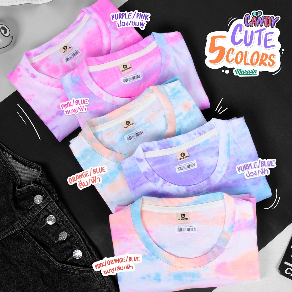 ( มีโค้ดส่วนลด 50 บาท )เสื้อมัดย้อม candy เสื้อยืด เสื้อเเฟชั่น ลายดอก