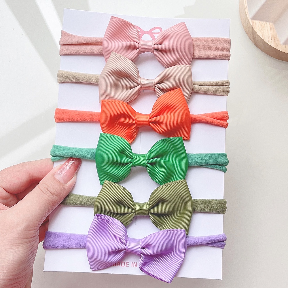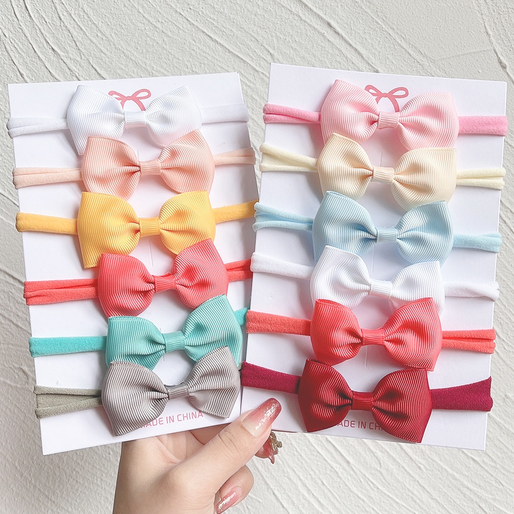 6 ชิ้น / ชุดน่ารักทึบโบว์เด็กผู้หญิงผ้าคาดศีรษะริบบิ้นผ้าไนลอน