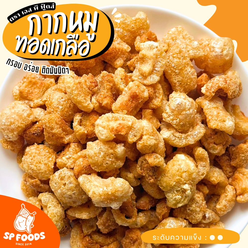 [ขายดี] กากหมูทอดเกลือ By SP FOODS ชิ้นเล็กพอดีคำ ทอดสูตรโบราณ กากหมู หมูกระจก แคบหมู น้ำพริกหนุ่ม