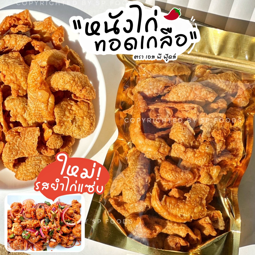หนังไก่กรอบทอดเกลือ By SP FOODS ไร้มัน ไม่อมน้ำมัน ใช้น้ำมันปาล์ม อิสลามทานได้ หนังไก่ทอด