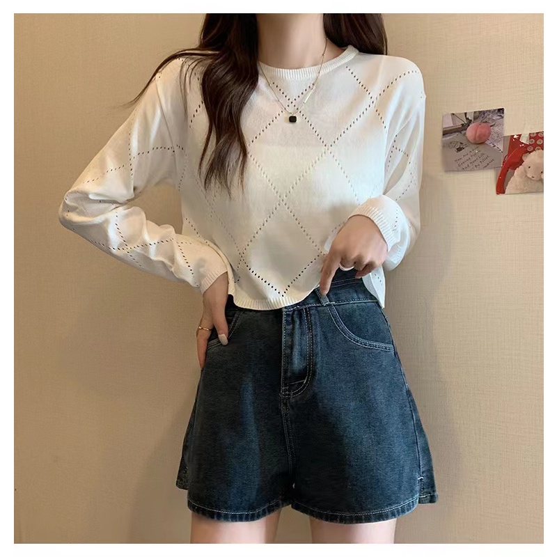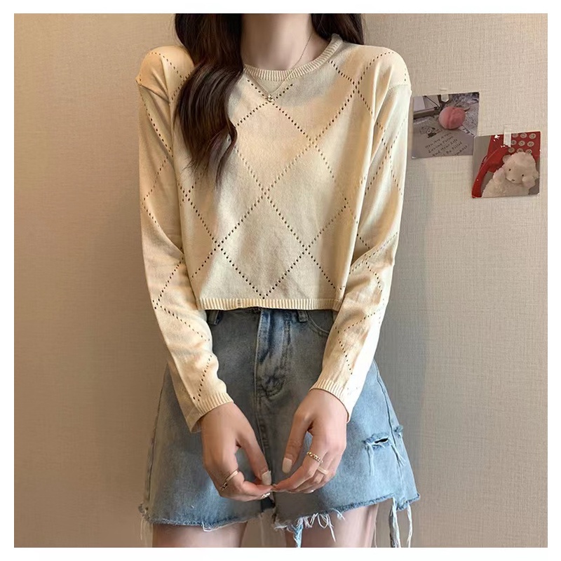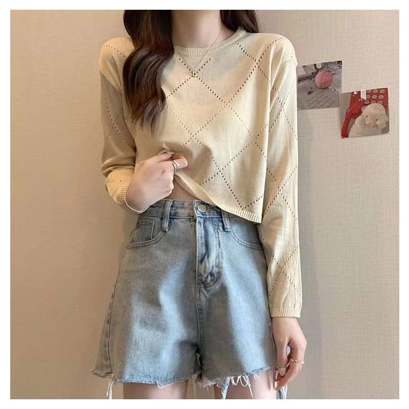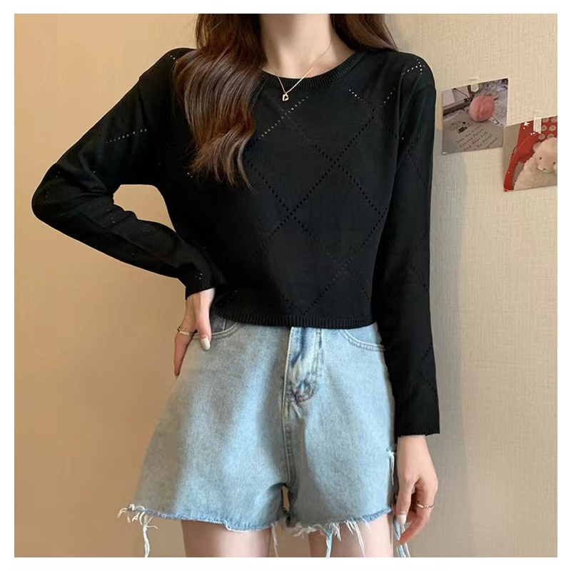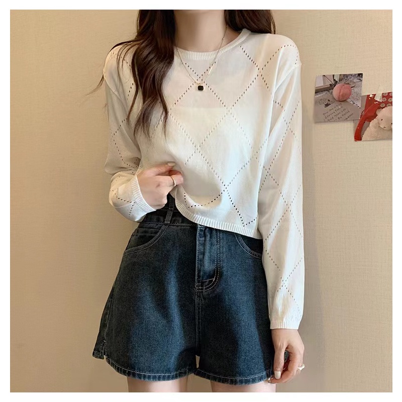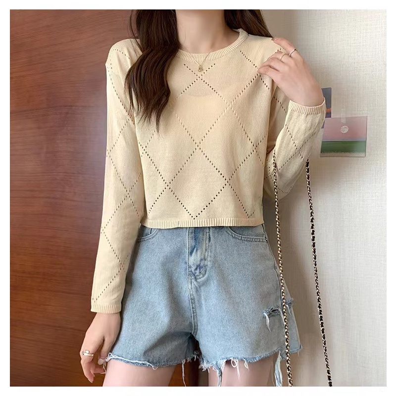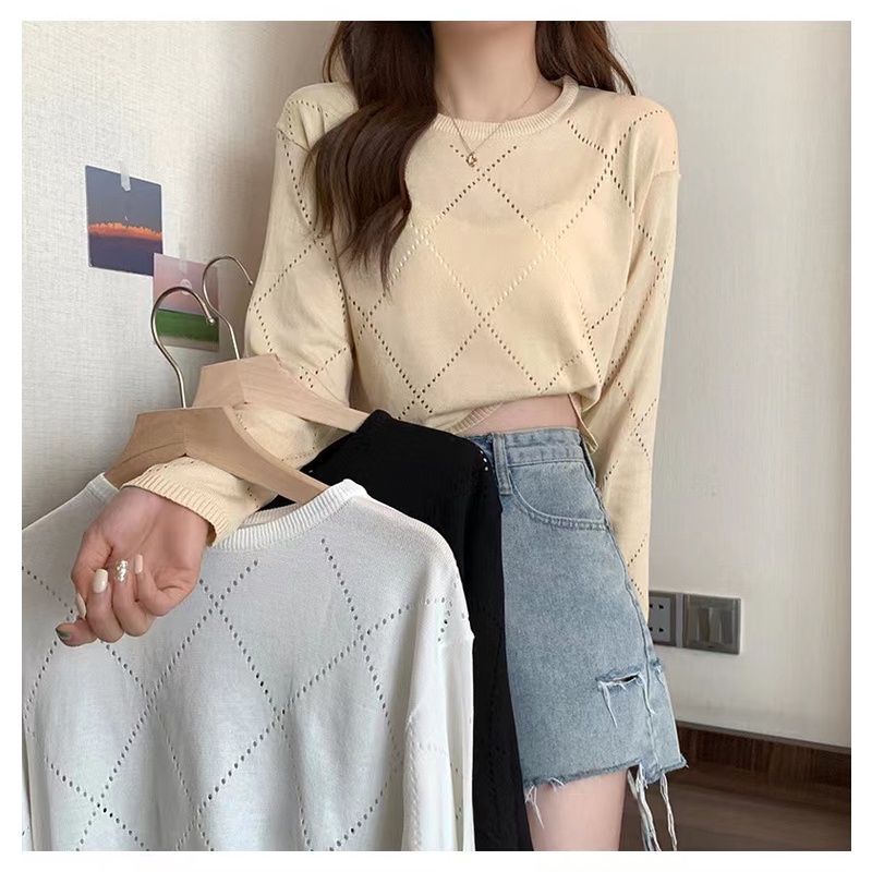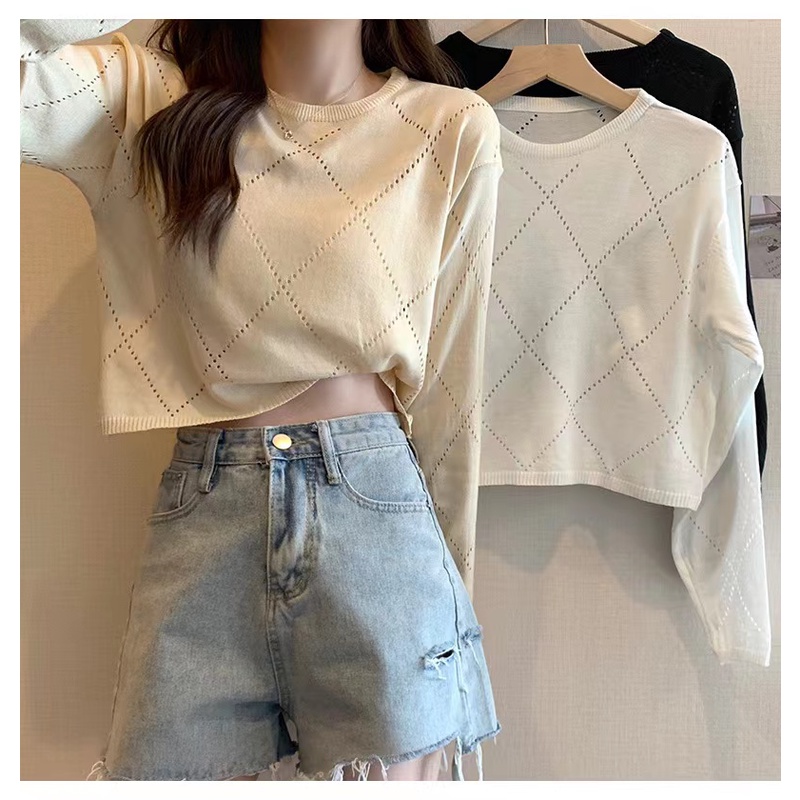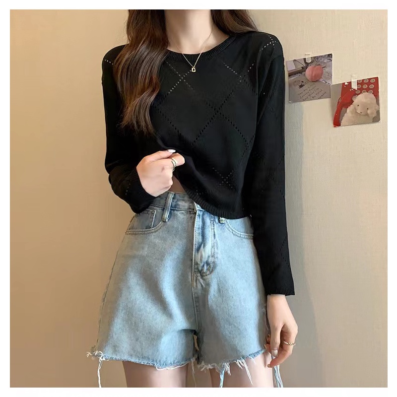 Bonnie(พร้อมส่ง/ใหม่)#98102เสื้อยืดแขนยาวกลวงบางสตรีปี 2023 การออกแบบใหม่เสื้อกันหนาว