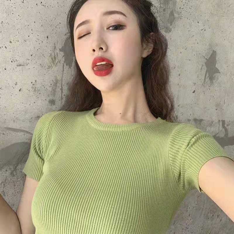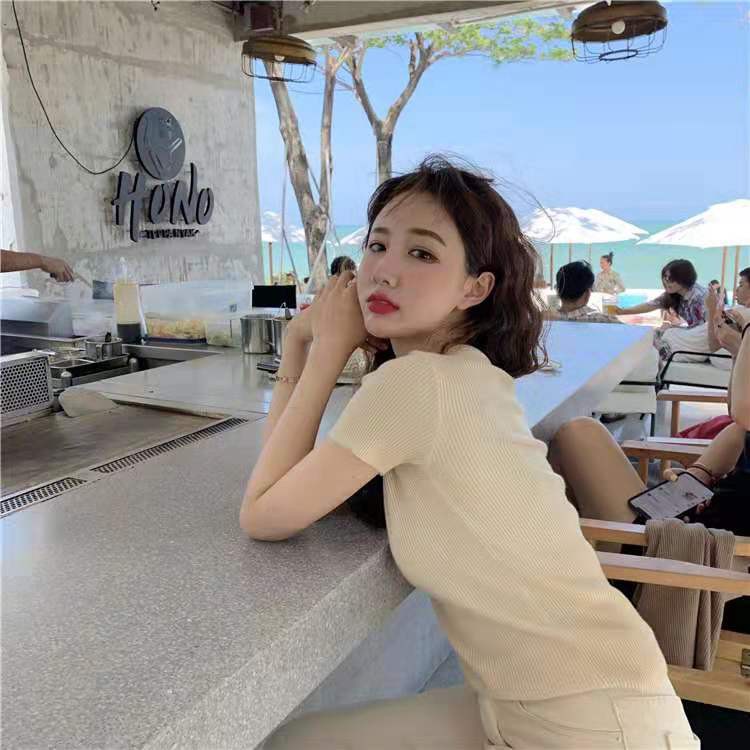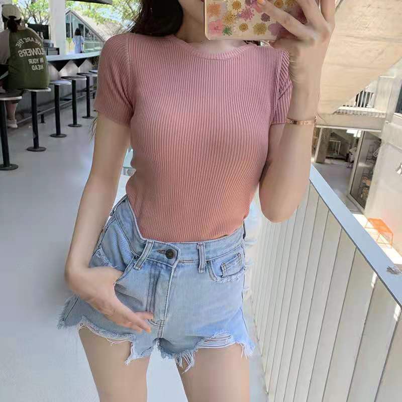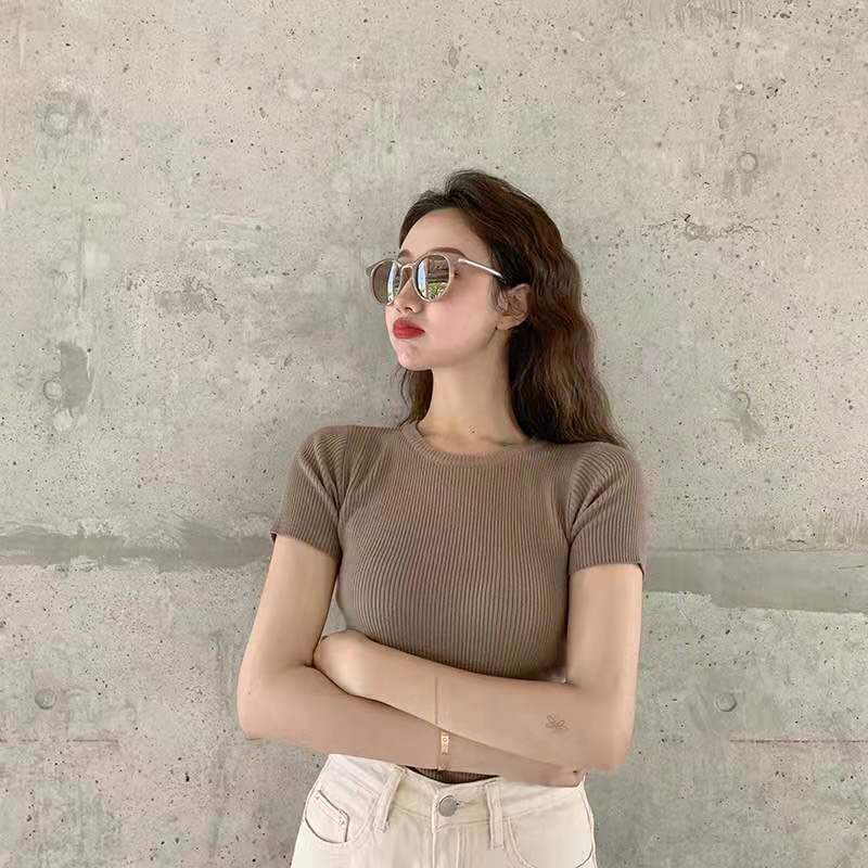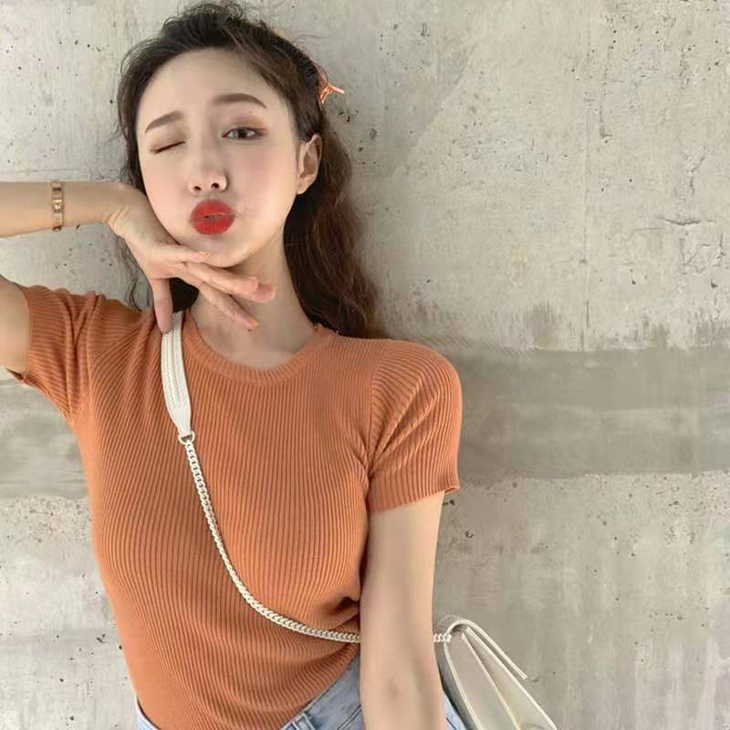 Bonnieเสื้อไหมพรมคอกลมทรงรัดรูปสไตล์เกาหลี(พร้อมส่ง/ใหม่)รุ่นO#002