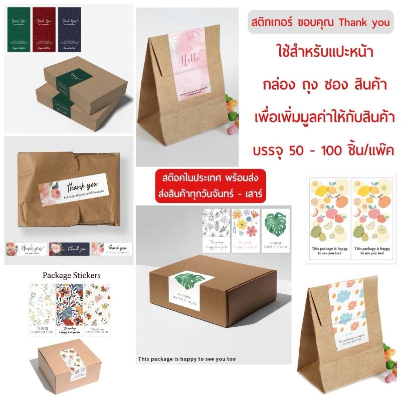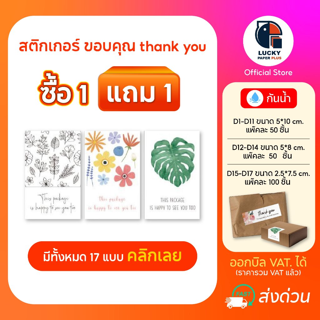 โปรโมชั่น ซื้อ1 แถม1 สติกเกอร์​ ขอบคุณ​ thank you ฉลากสินค้า พิมพ์กันน้ำ​ ภาพและสีคมชัด
