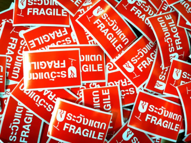 สติกเกอร์ ระวังแตก Fragile ราคาส่ง จำนวนครบแน่นอน