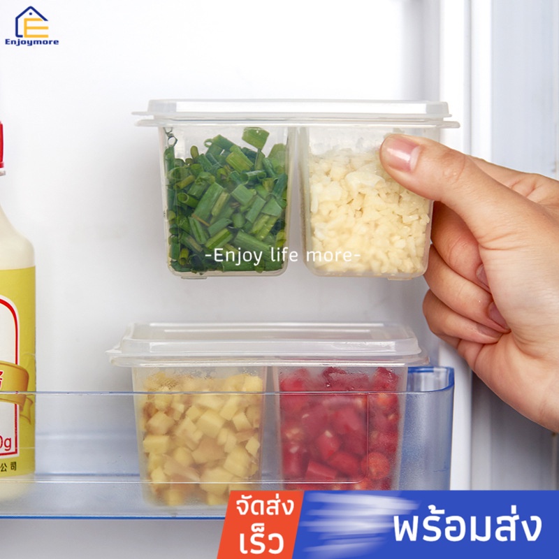 Enjoymore กล่องเก็บของในตู้เย็น กล่องเก็บกระเทียมและขิง ต้นหอม กระเทียม กล่องเก็บของพลาสติก กล่องพลาสติก