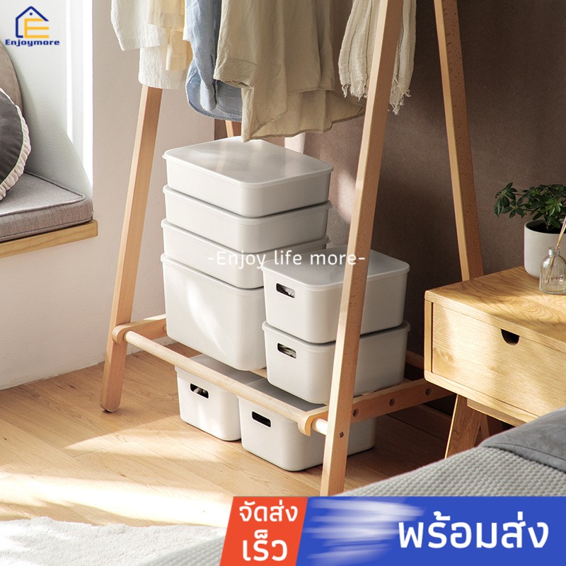 Enjoymore กล่องมินิมอล กล่องอเนกประสงค์ พร้อมฝาปิด กล่องเก็บของพร้อมฝา กล่องพลาสติก กล่องเก็บของอเนกประสงค์