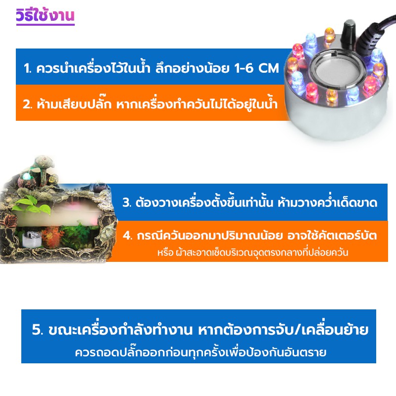 เครื่องสร้างควัน Mist Maker หมอกอัตโนมัติ พร้อมไฟLED อุปกรณ์ตกแต่งสวน น้ำพุฮวงจุ้ย เครื่องพ่นควัน