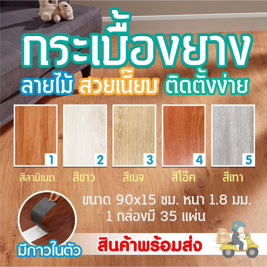 พร้อมส่ง 🔥 กระเบื้องยางลายไม้ ชนิดมีกาวในตัว หนา 1.8 มม New Arrival 5 สี 🔥📌 ราคาต่อ1แผ่น