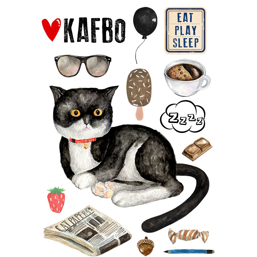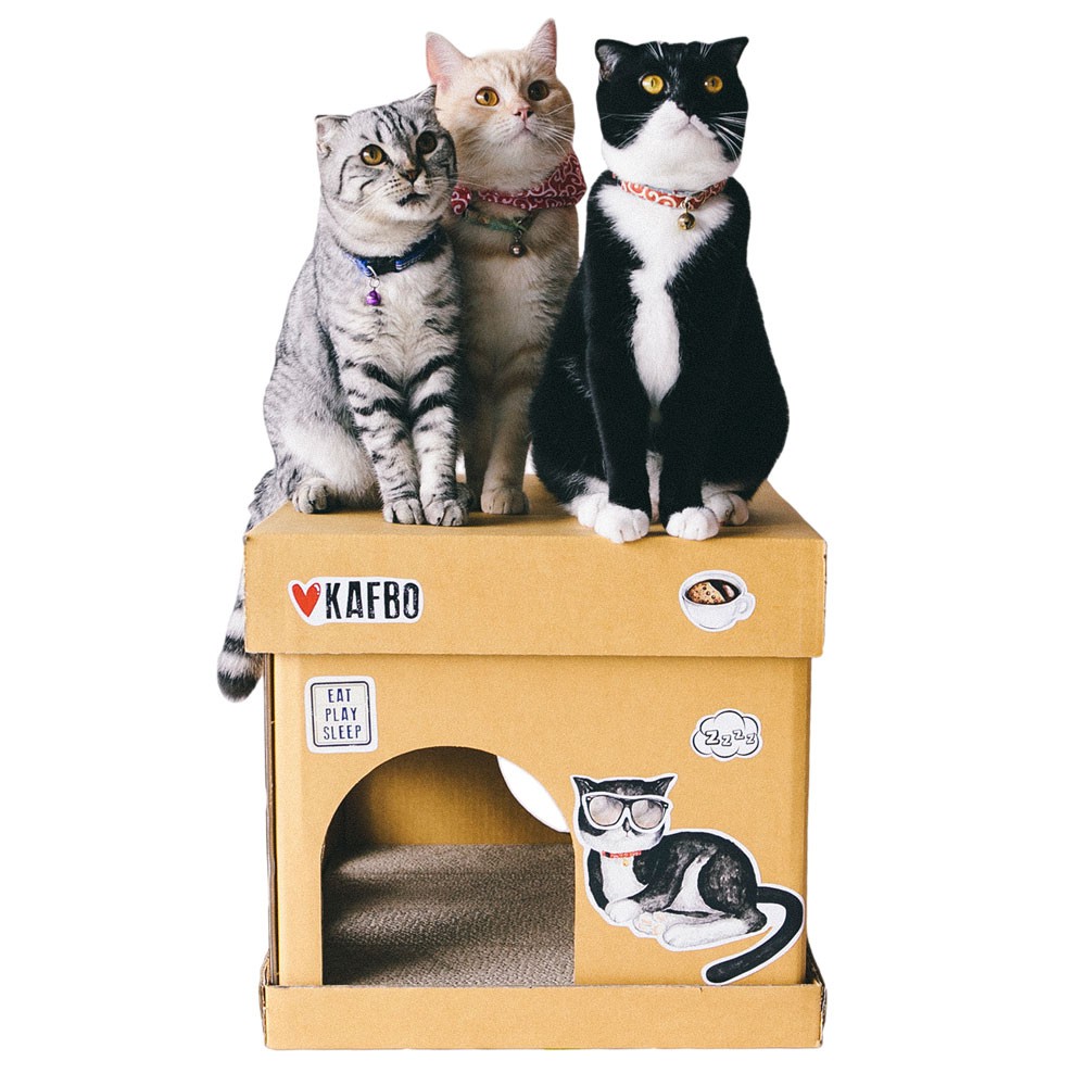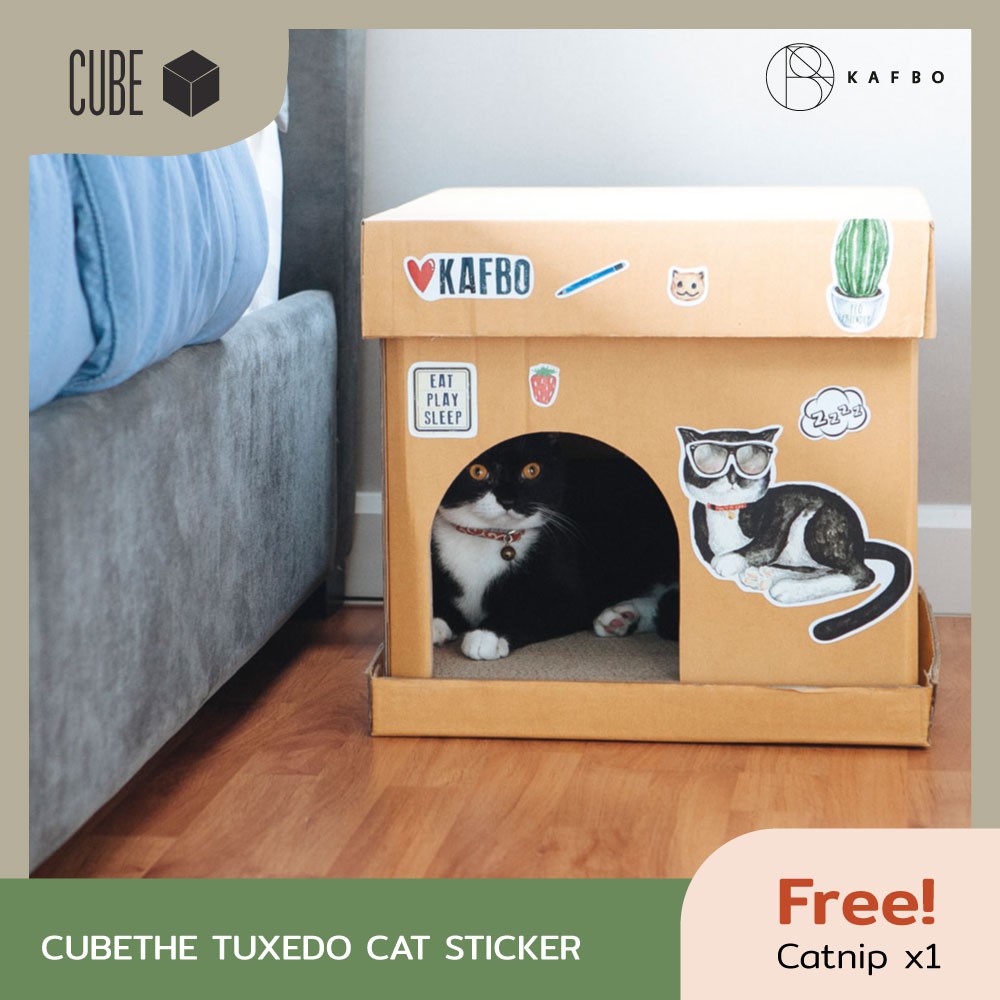 KAFBO CUBE THE TUXEDO CAT STICKER กล่องบ้านแมว สติ๊กเกอร์ลายแมวสีดำ ที่ลับเล็บแมว ที่ฝนเล็บแมว