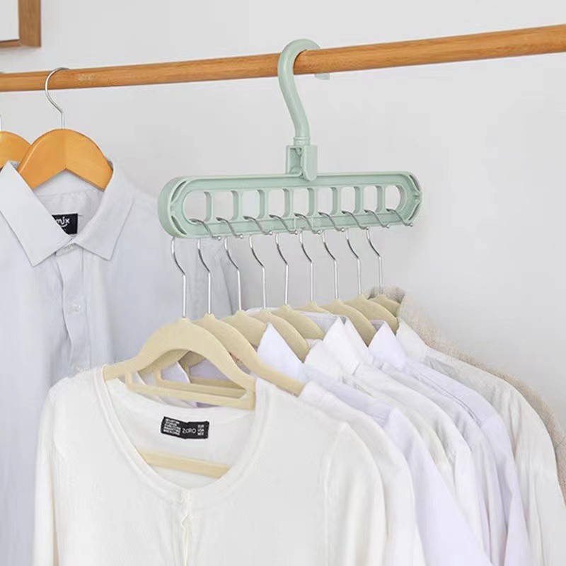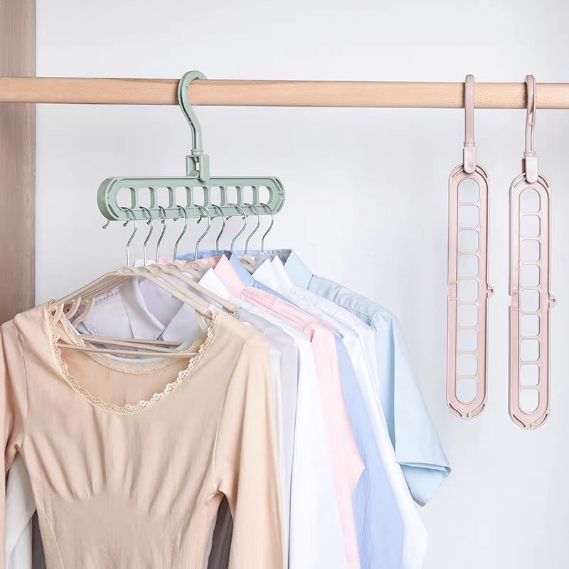 [🔥 1 บาท 🔥] ที่แขวนผ้าพลาสติก 9 ช่องสีพาสเทล ไม้แขวนจัดระเบียบในตู้เสื้อผ้า