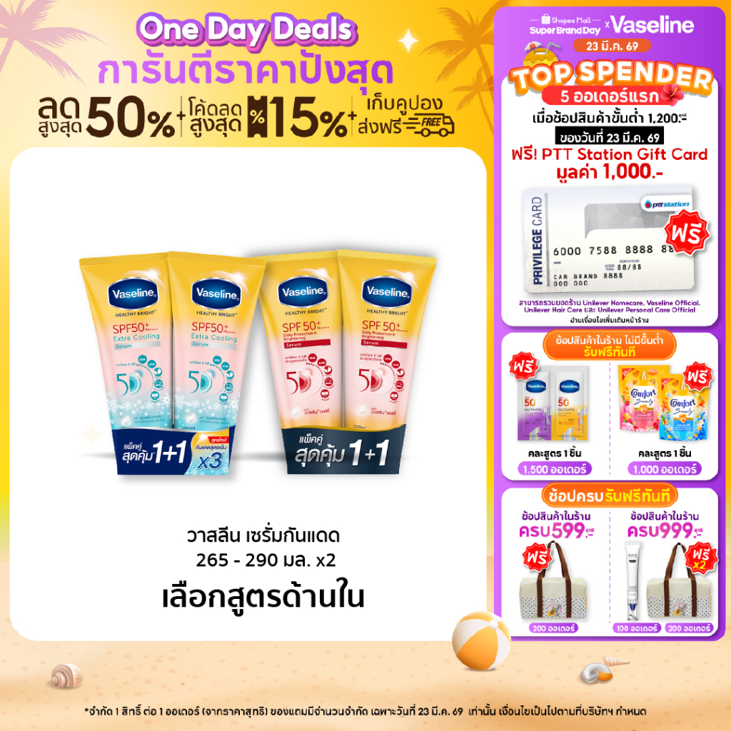 วาสลีน เฮลธี ไบรท์ เซรั่มกันแดด ซันแอนด์โพลูชั่น โพรเทคชั่น SPF50+ PA+++ ปกป้องมลภาวะ 265-290 มล.Vaseline Healthy Bright