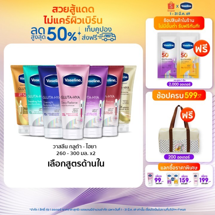 [อยู่ระหว่างเปลี่ยนบรรจุภัณฑ์]วาสลีน เฮลธี ไบรท์ กลูต้า-ไฮยา เซรั่ม 260-300มล.Vaseline Gluta-Hya Serum 260-300ml.