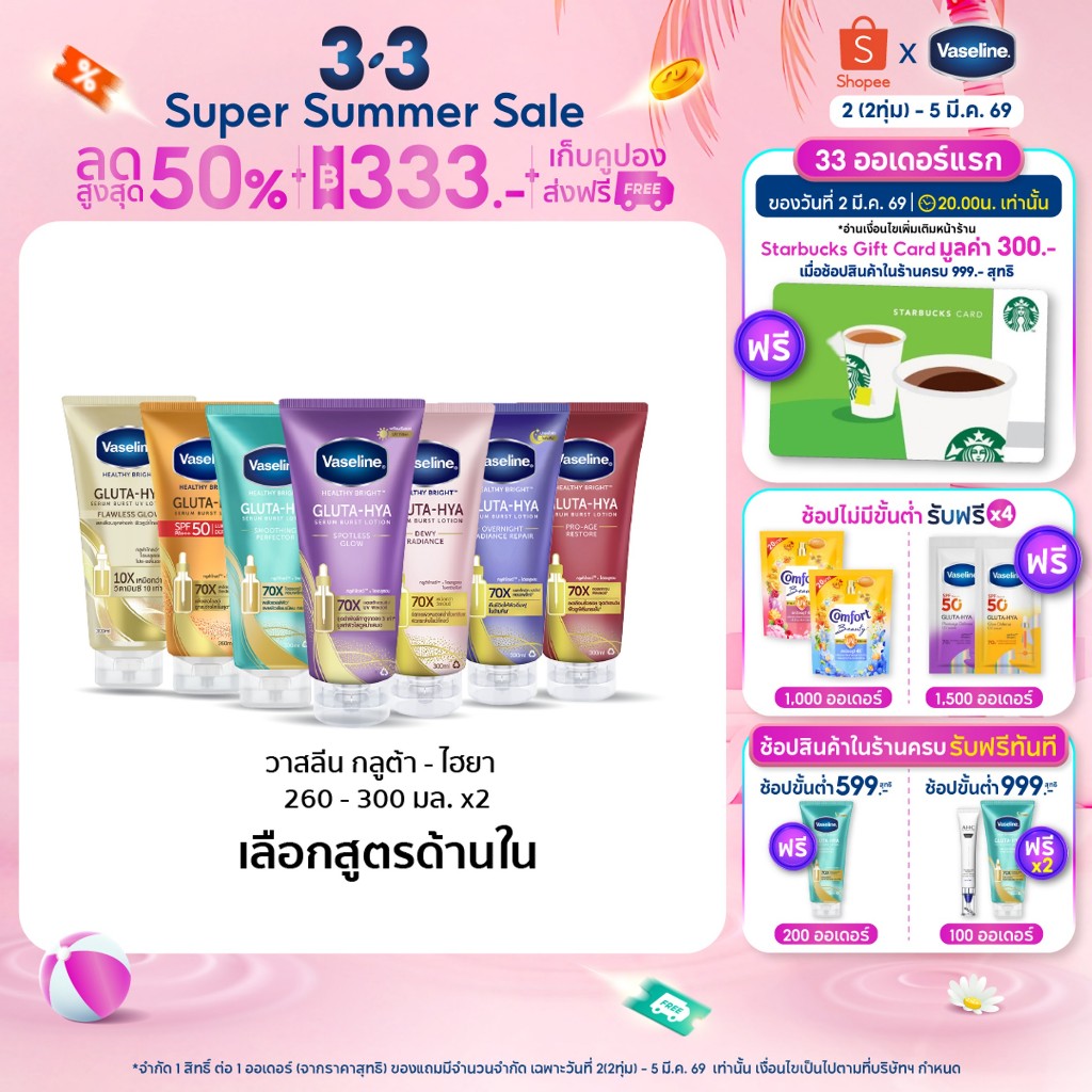 วาสลีน เฮลธี ไบรท์ กลูต้า-ไฮยา เซรั่ม 260-300มล.Vaseline Gluta-Hya Serum 260-300ml.