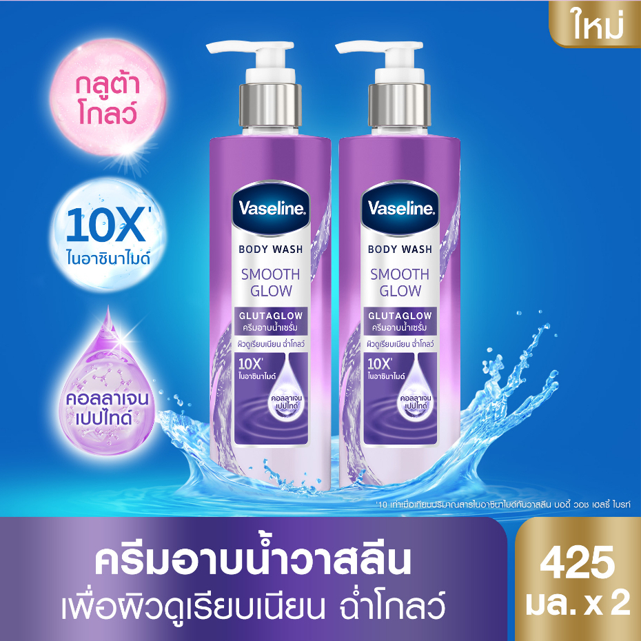 วาสลีน ครีมอาบน้ำ เซรั่ม กลูต้า โกลว์ ไนอาซินาไมด์ 10X 425 มล.x2 เลือกสูตรด้านใน Vaseline Body Wash Gluta glow 425 ml x2