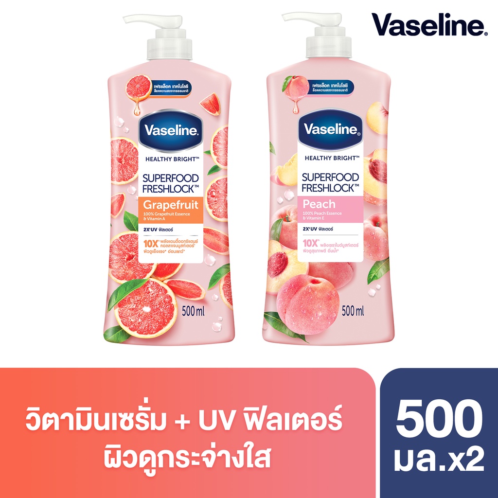 วาสลีน เฮลธี้ ไบรท์ ซุปเปอร์ฟู้ด เฟรชล็อค โลชั่น 480มล. (x2)