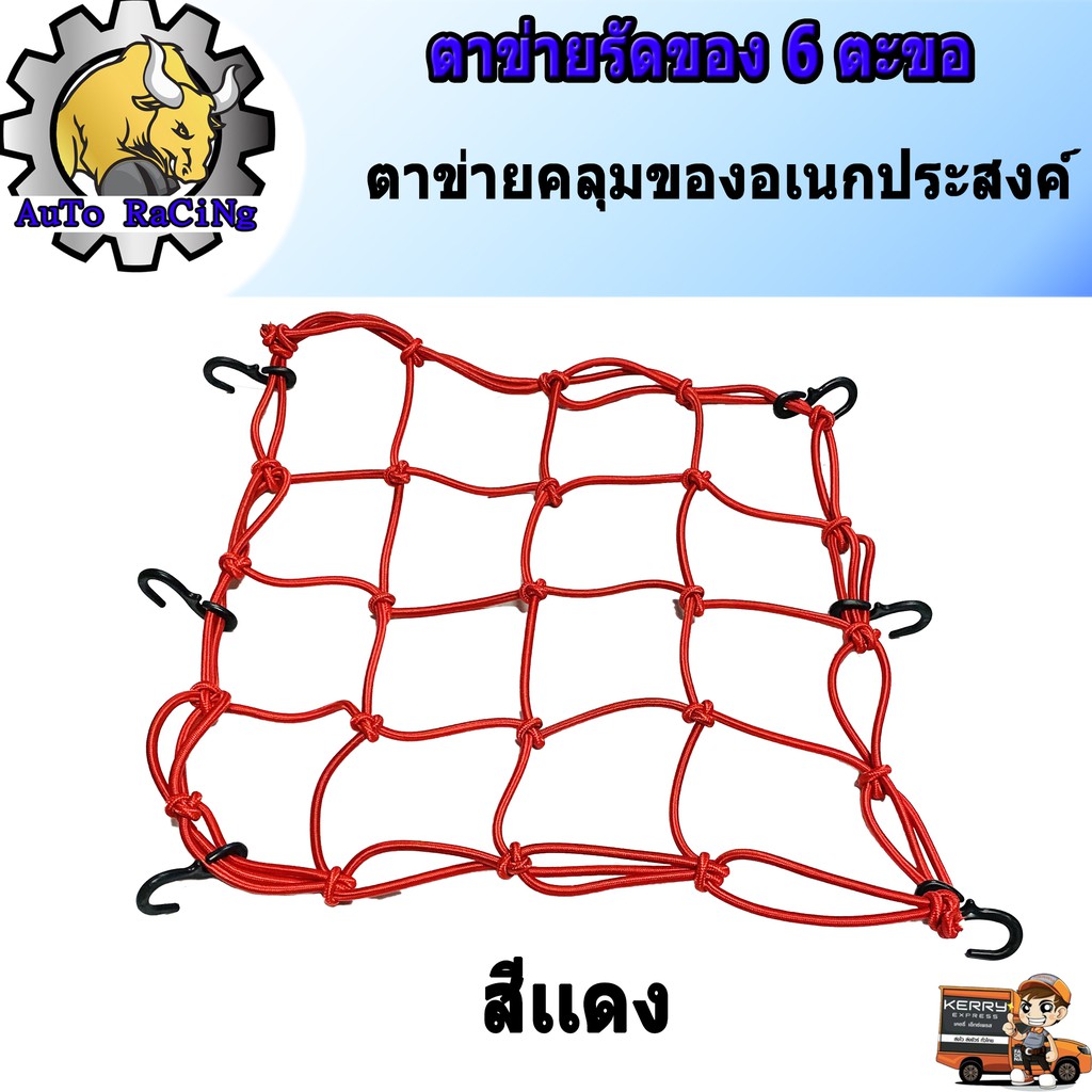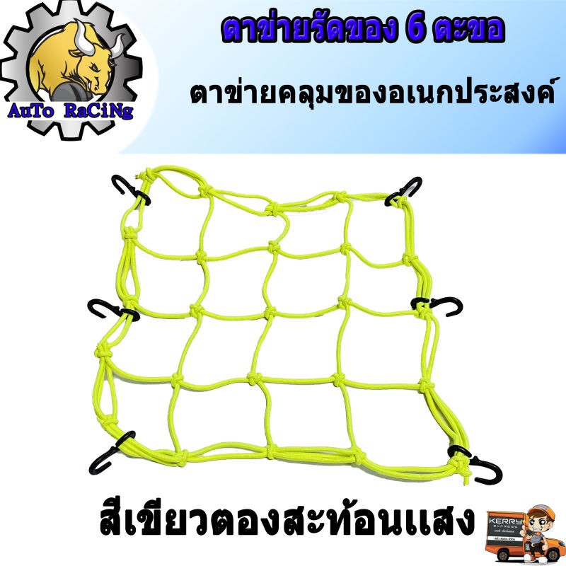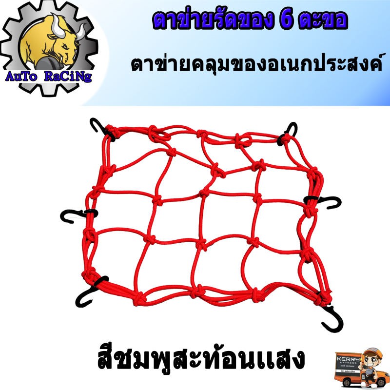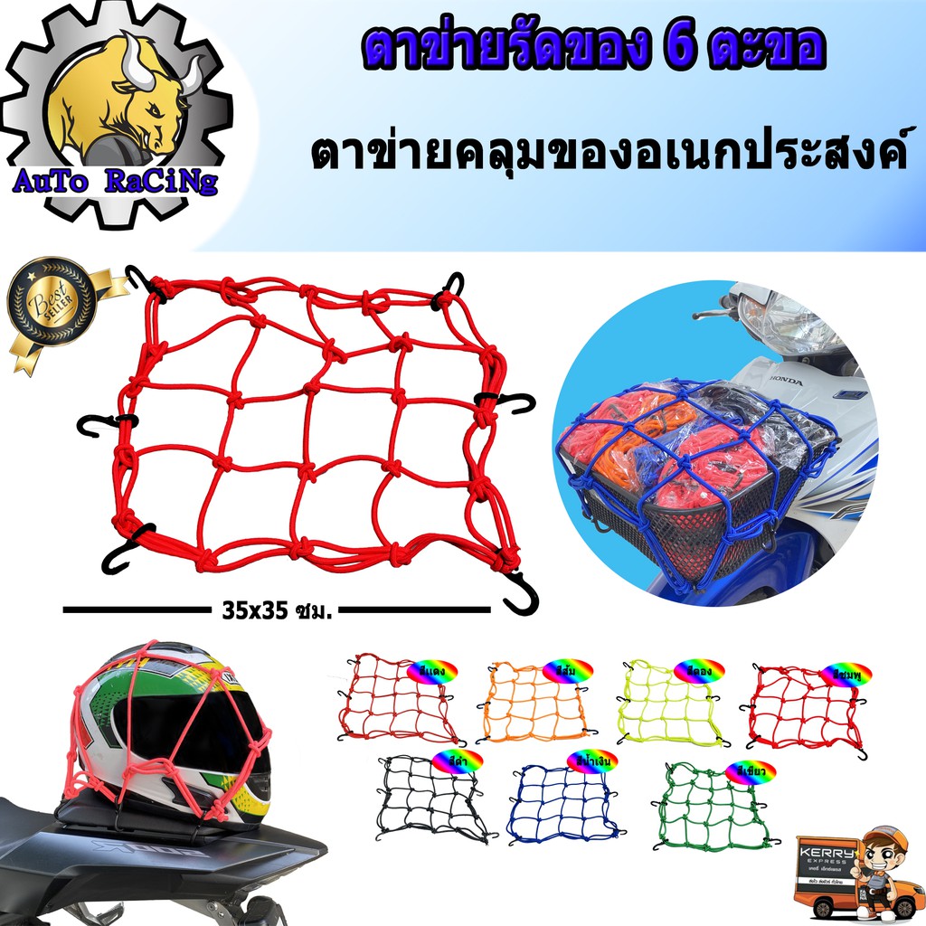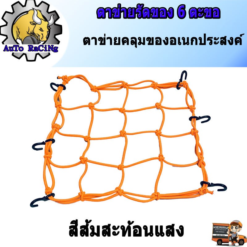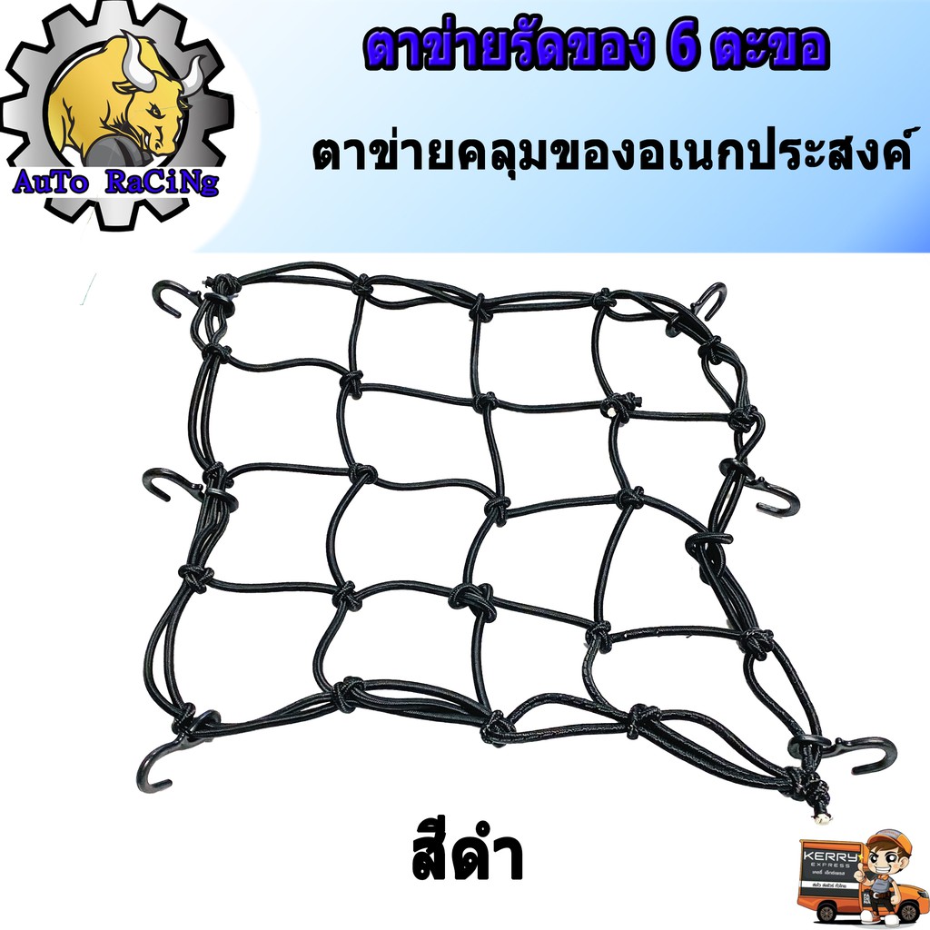 ตาข่ายรัดของอเนกประสงค์ มอเตอร์ไซค์ ตะขอเกี่ยว 6ตัว เลือกสีด้านในเลยครับ