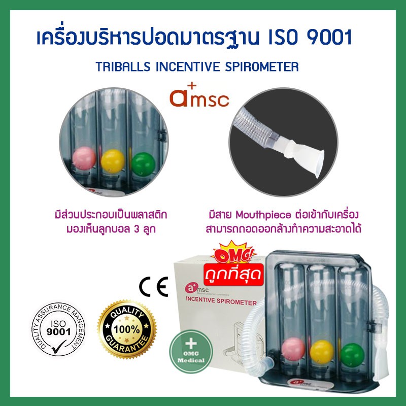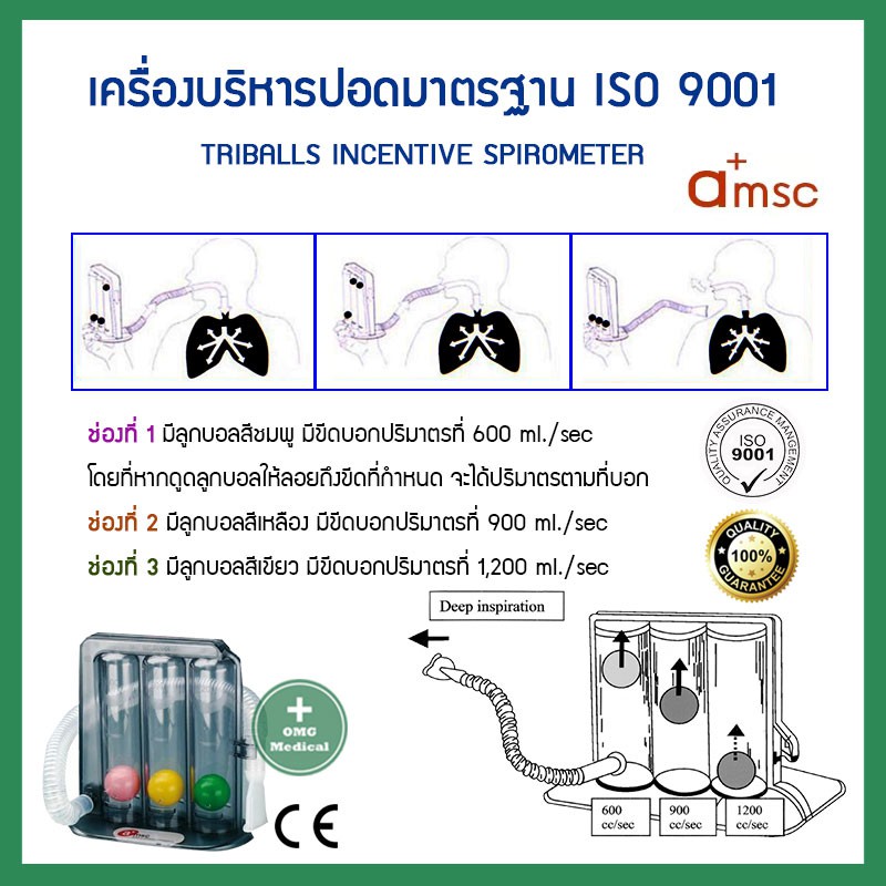 เครื่องบริหารปอด Incentive Triflows Spirometer Amsc เครื่องดูดบริหารปอด เครื่องช่วยบริหารปอด Triballs เพิ่มศักยภาพปอด