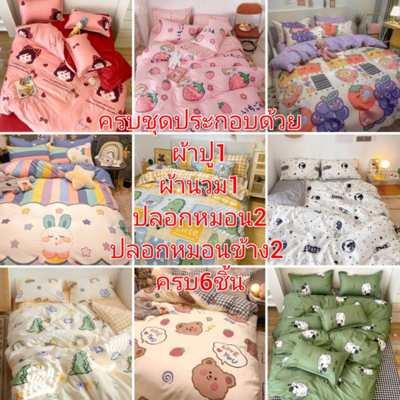 ผ้าปูที่นอน ชุดเครื่องนอน พร้อมผ้านวม/ครบชุด6ชิ้น/3-6f