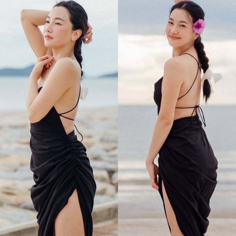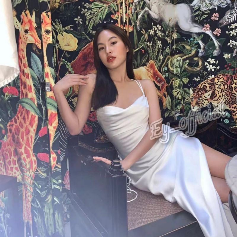 Ey_official#311#พร้อมส่งชุดเดรสสสายเดี่ยวสายไขว้ข้างหลัง สุดเซ็ดซี่เนื้อผ้าซาตินใส่แล้วทิ้งทรงสวย