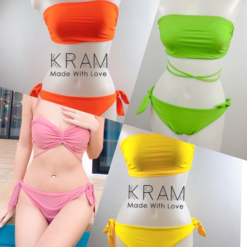 ⚡️ชุดว่ายน้ำบิกินี่เกาะอกบราบิดใส่ได้2แบบมีฟองน้ำมีซับใน(1069)