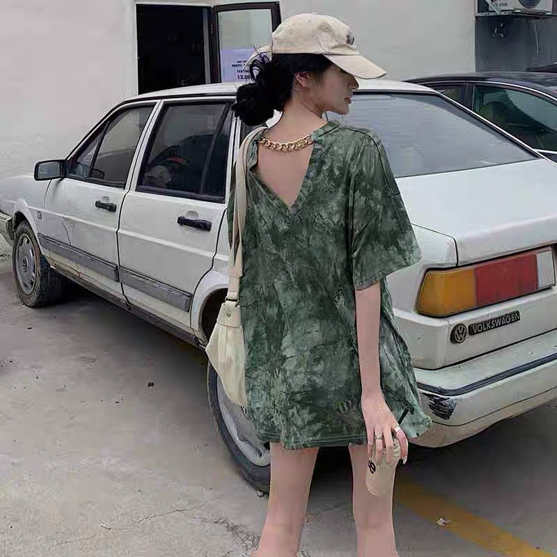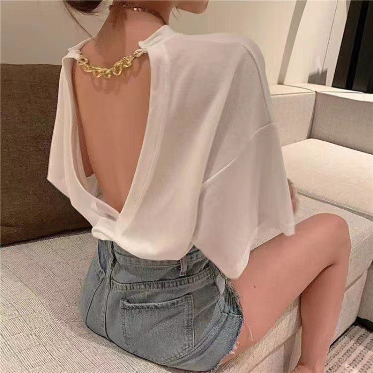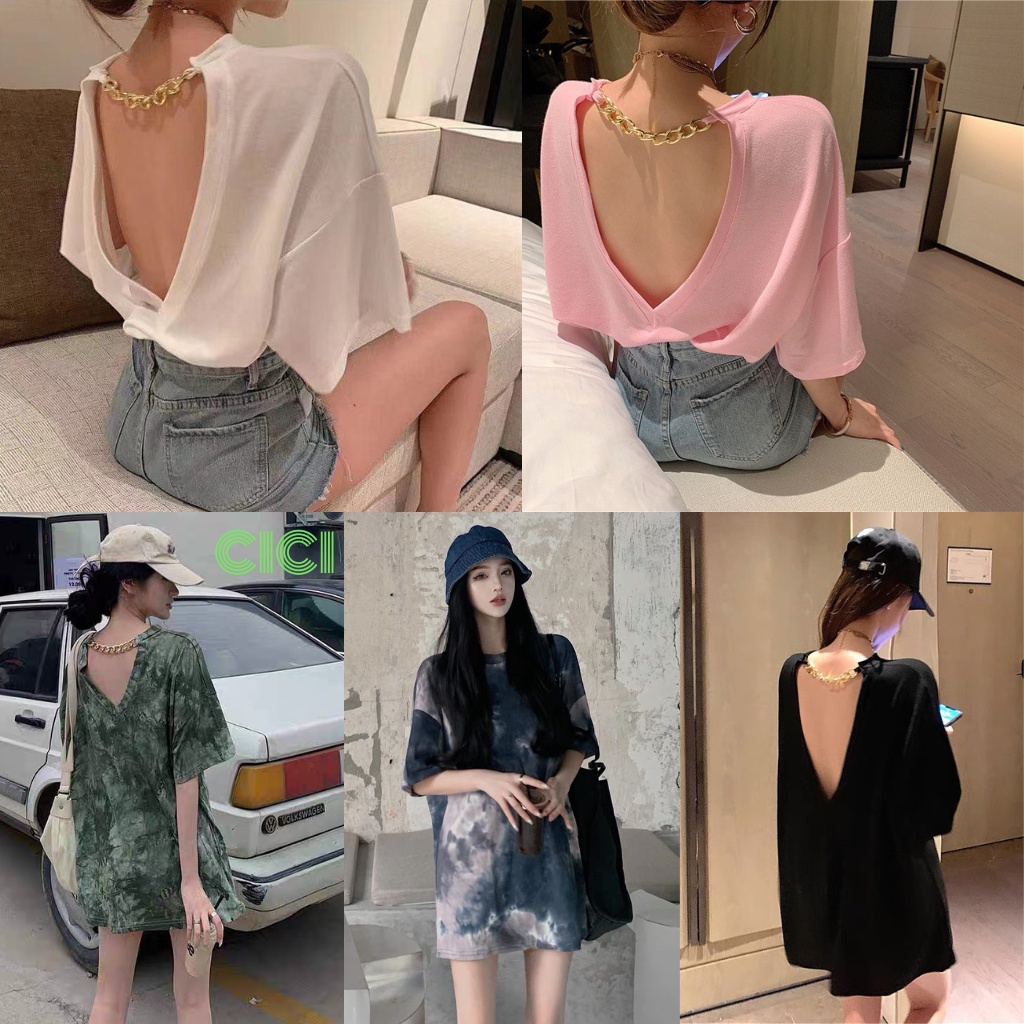 ส่งทันที Cici(NO. 8990)เสื้อยืดทรง Oversize แต่งโซ่เว้าหลัง ผ้านิ่ม ใส่สบาย