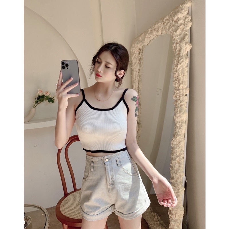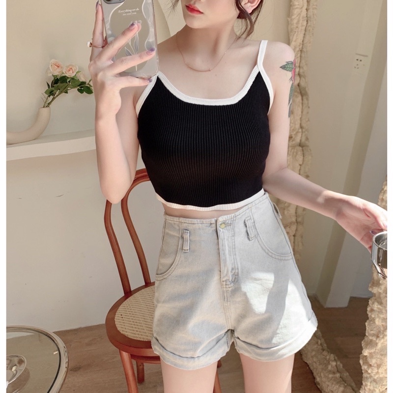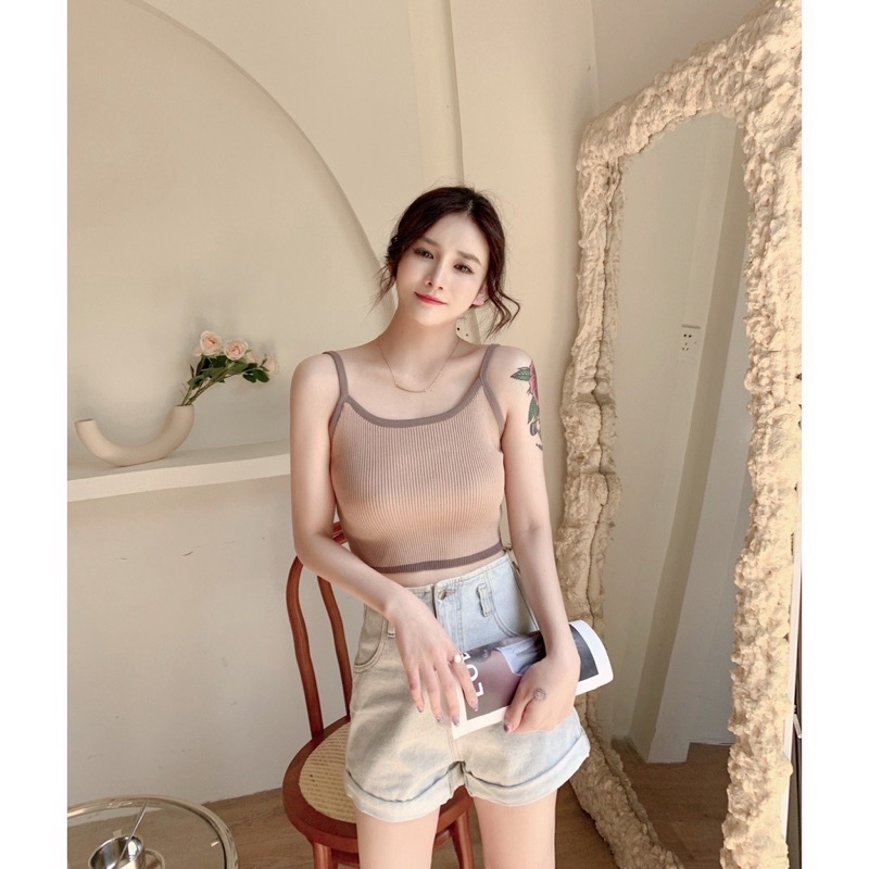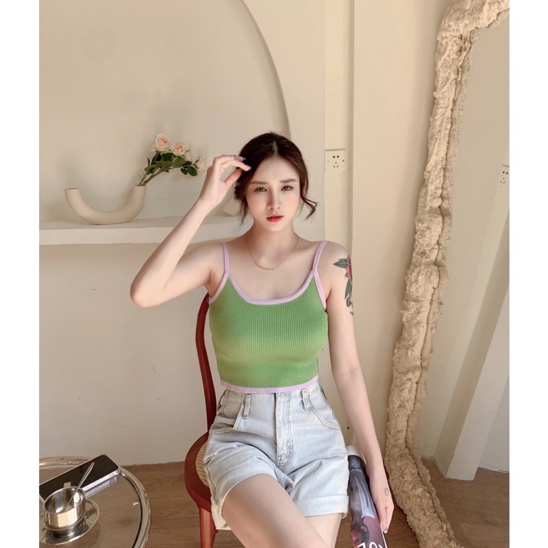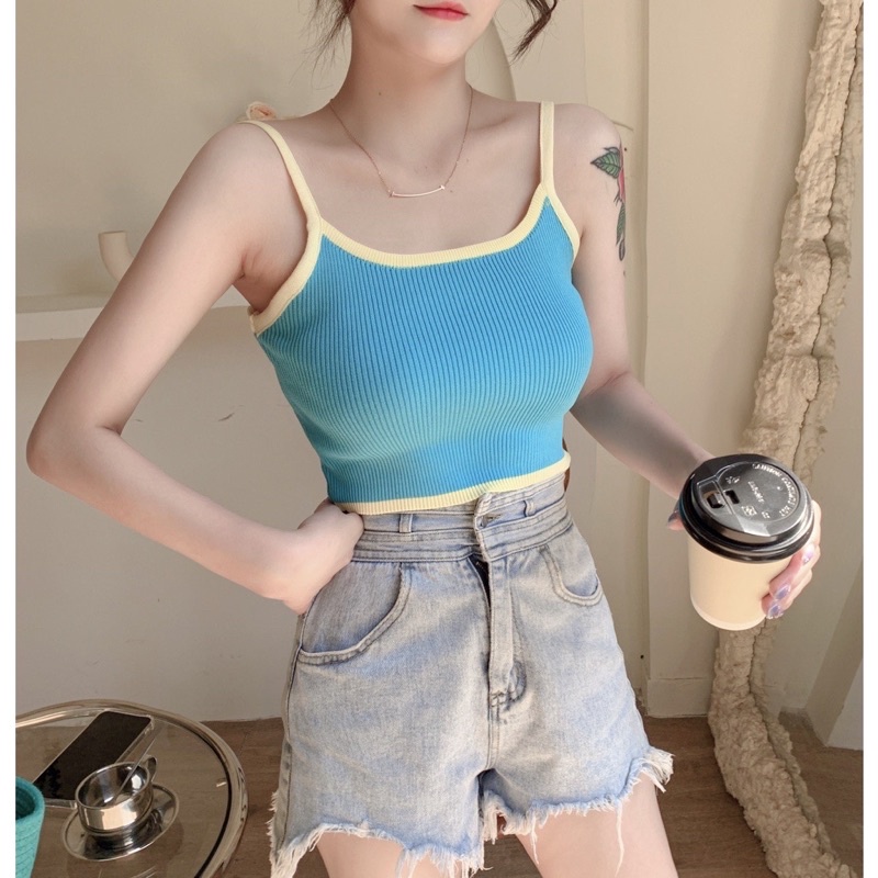 ส่งทันที Cici(SALE. 1789)Basic crop สายเดี่ยวครอปไหมพรมknit ผ้าทอร่องสีทูโทน