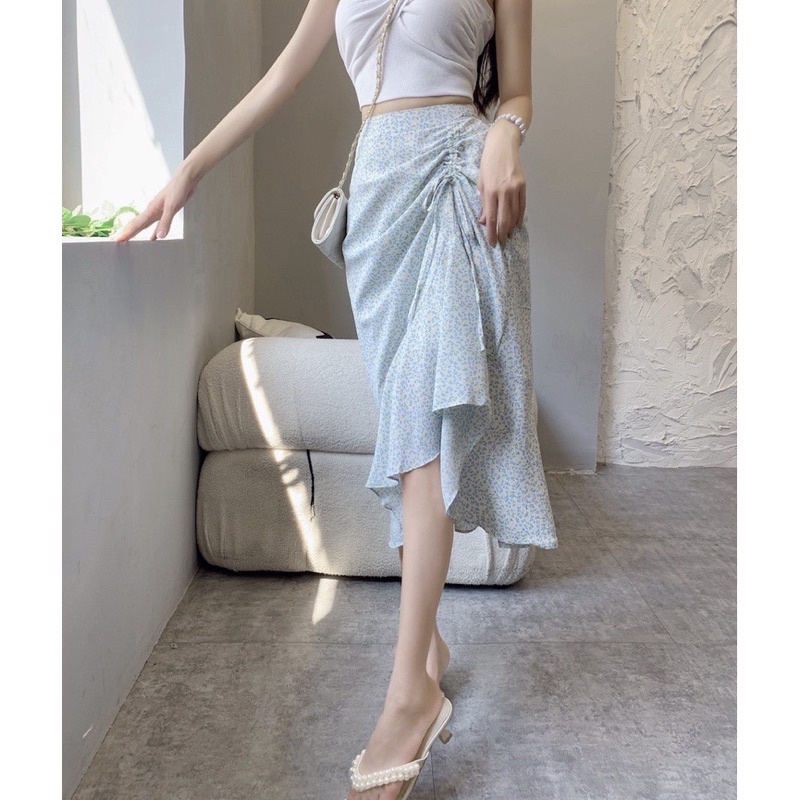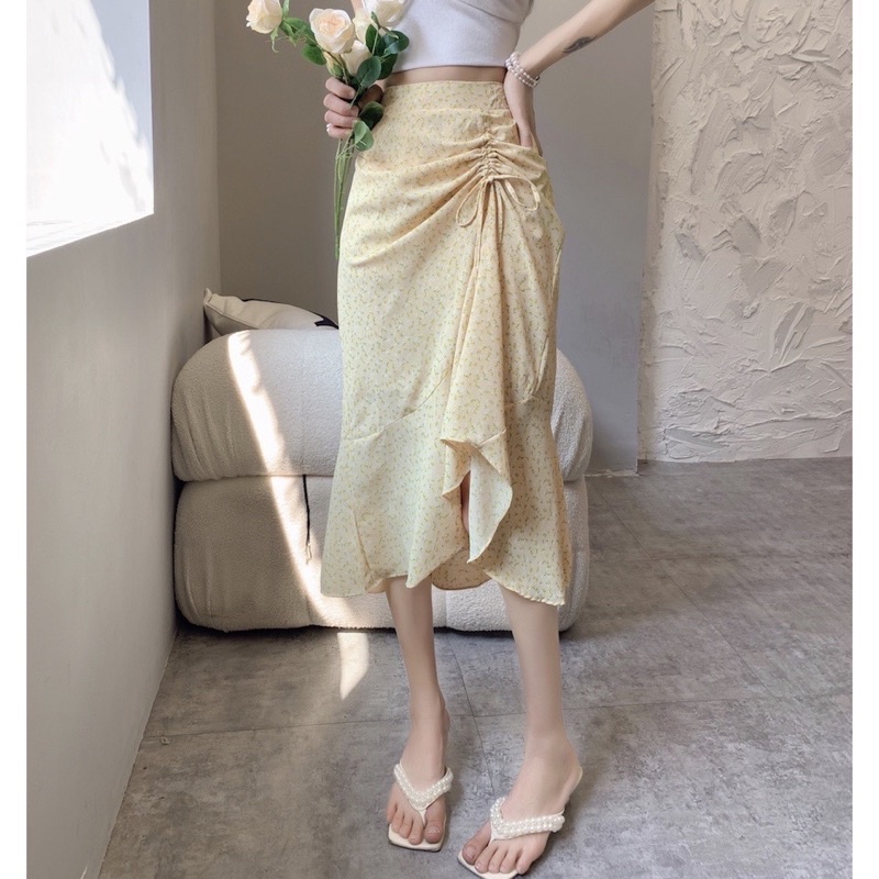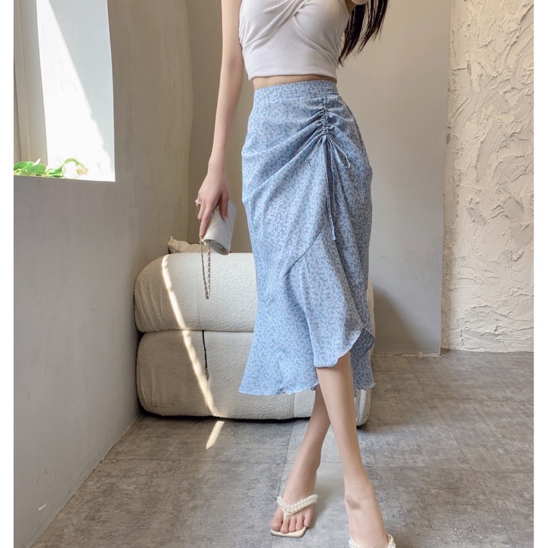 ส่งทันที Cici(NO. 045)กระโปรงยาวเอวสม๊อคหลัง ดีเทลดีข้างลายดอกไม้ สายคาเฟ่ต้องไม่พลาดน่ารักเกินต้าน
