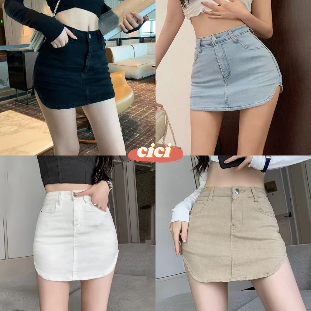 ส่งทันที Cici(NO. 2283)กระโปรงยีนส์สั้น เพิ่มความเว้าข้าง ยืดได้สวยเก๋ๆทรงสับจับแมทซ์อะไรก็ปัง ซับในเป็นกางเกง