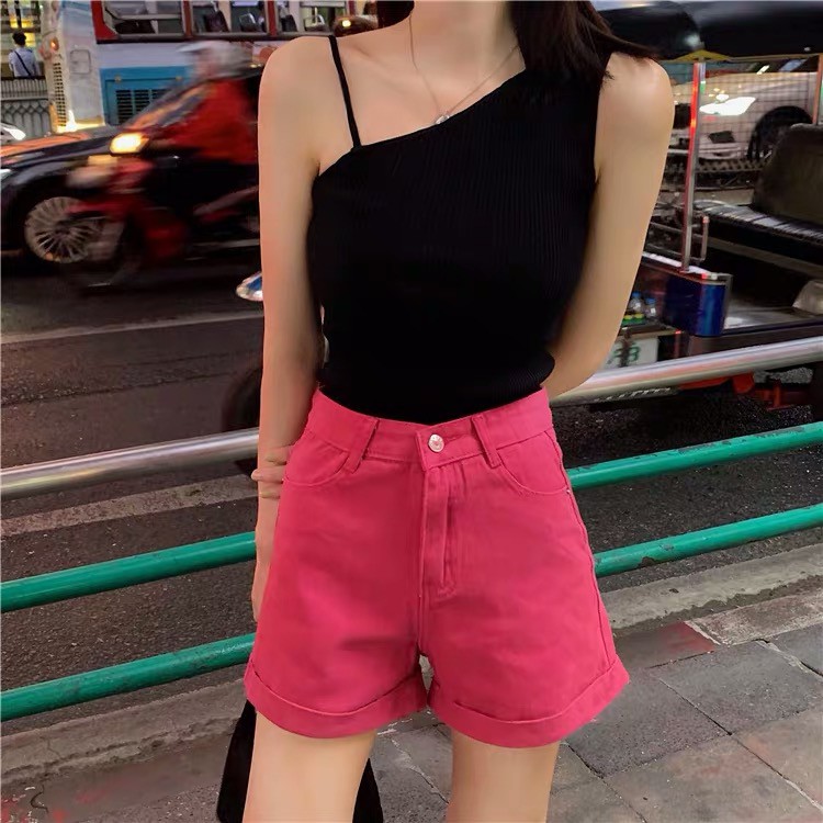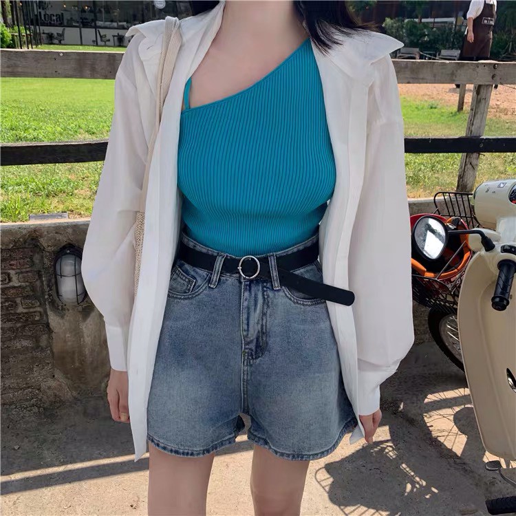 ส่งทันที Cici (พร้อมส่ง)เสื้อกล้ามสายเดี่ยว แต่งปาดไหล่สายเล็ก เซ็กซี่(9A18)