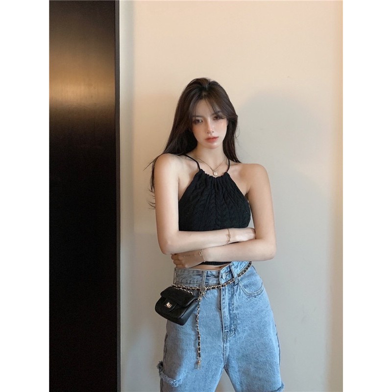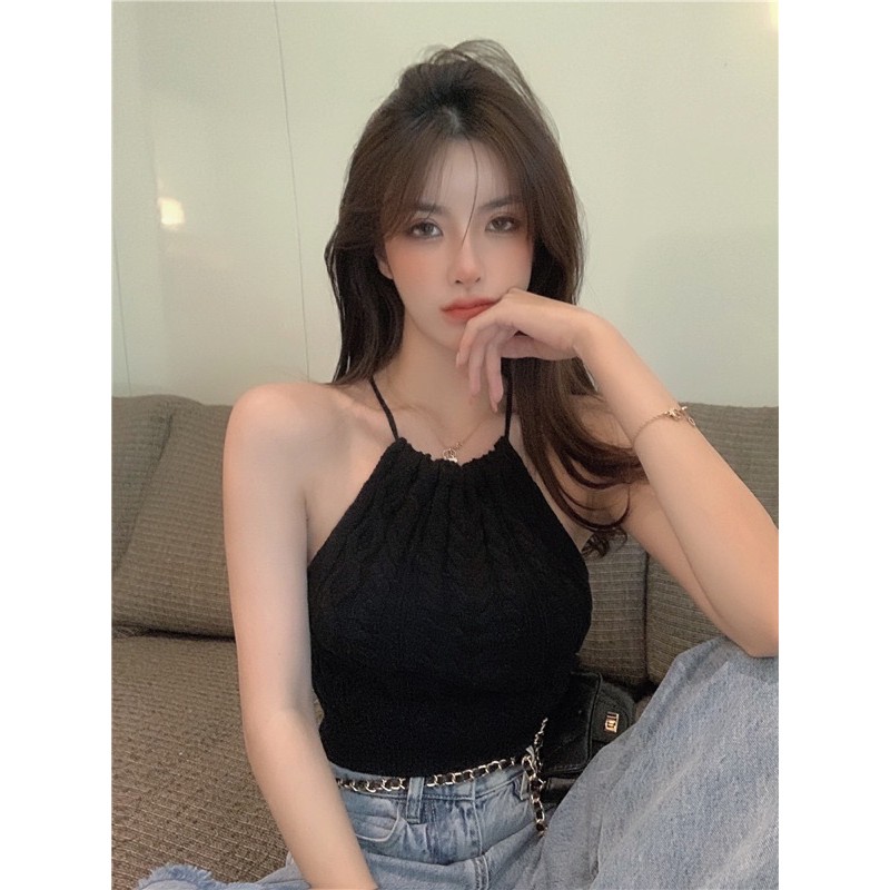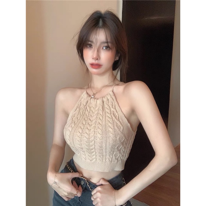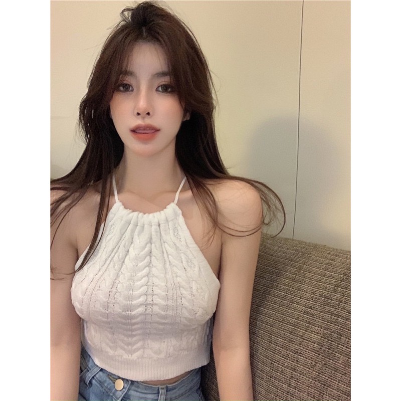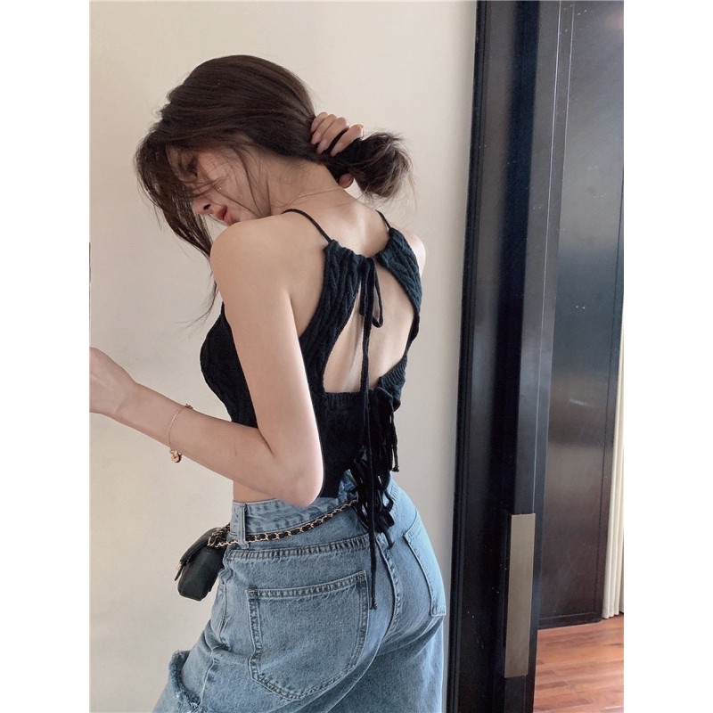ส่งทันที Cici(NO. 7954)สายเดี่ยวไหมพรม ทรงเว้าหลังมีสายมัดด้านหลัง ใส่แล้วดูแพง ไตล์เกาหลีเซ็กซี่