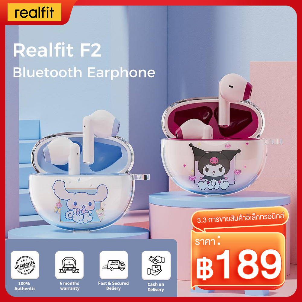 Realfit F2 หูฟังบลูทูธเบสที่ยอดเยี่ยมหูฟังไร้สายพร้อมไมโครโฟน 5H เล่นยาวสไตล์เดียวกันกับ Heavy Bass หูฟัง Lenovo LP40 Pro